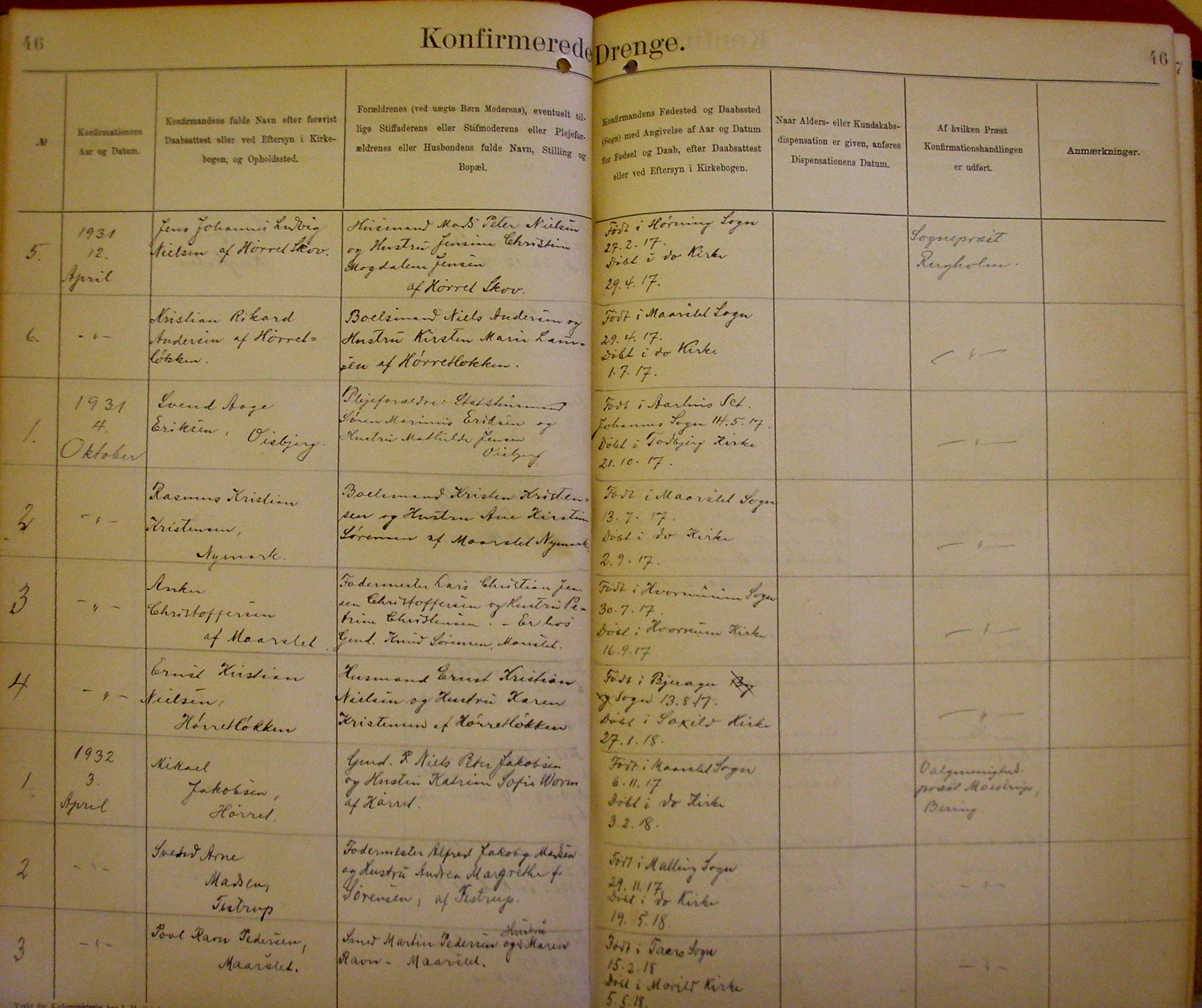 Side 46. 1931-1932. Konfirmerede DRENGE