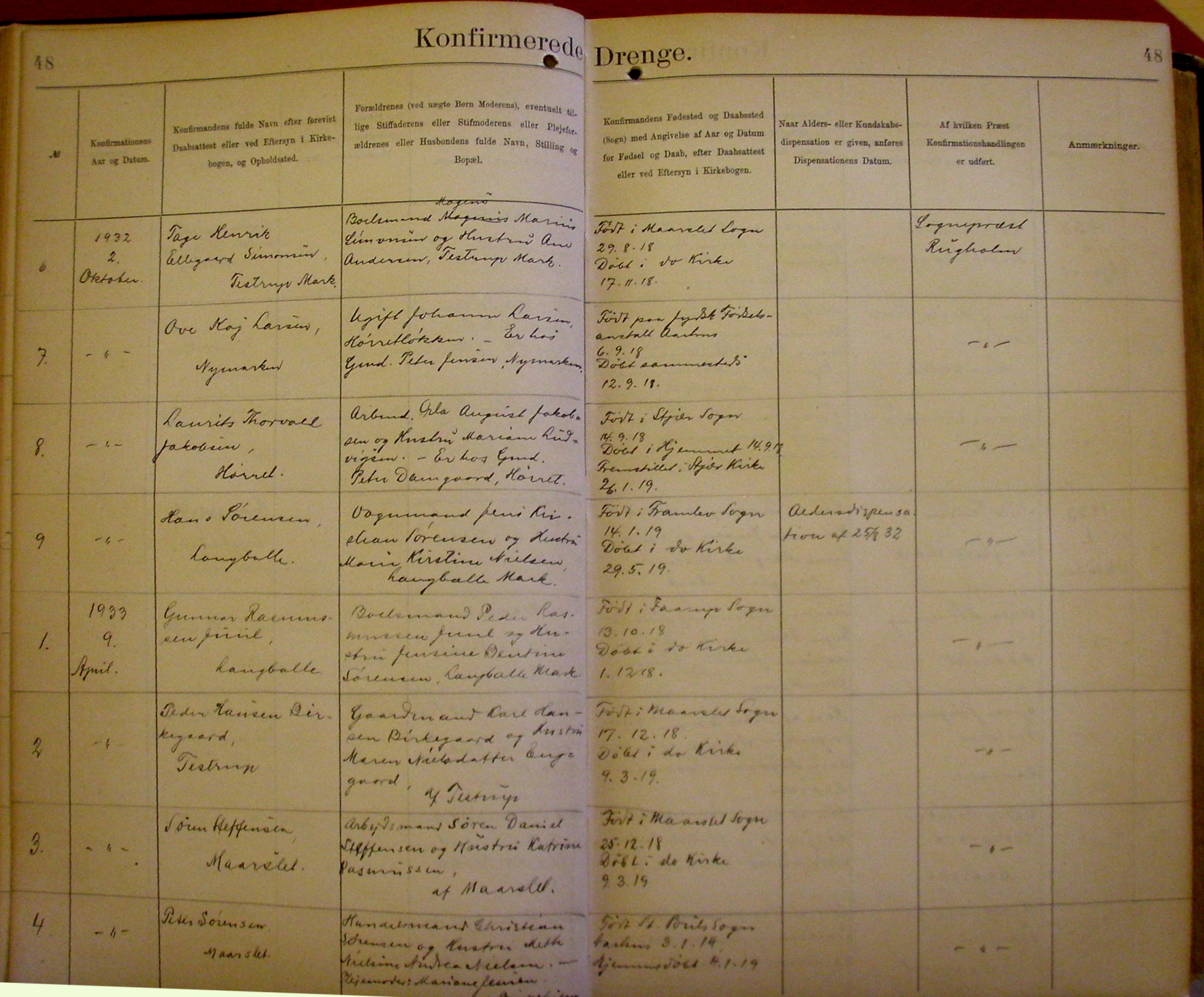 Side 48. 1932-1933. Konfirmerede DRENGE