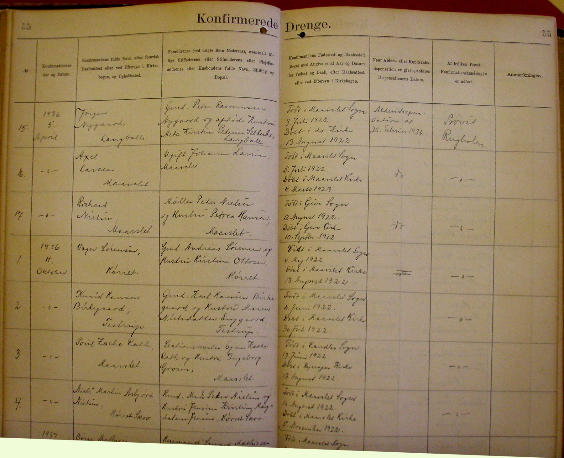 Side 55. 1936-1937. Konfirmerede DRENGE