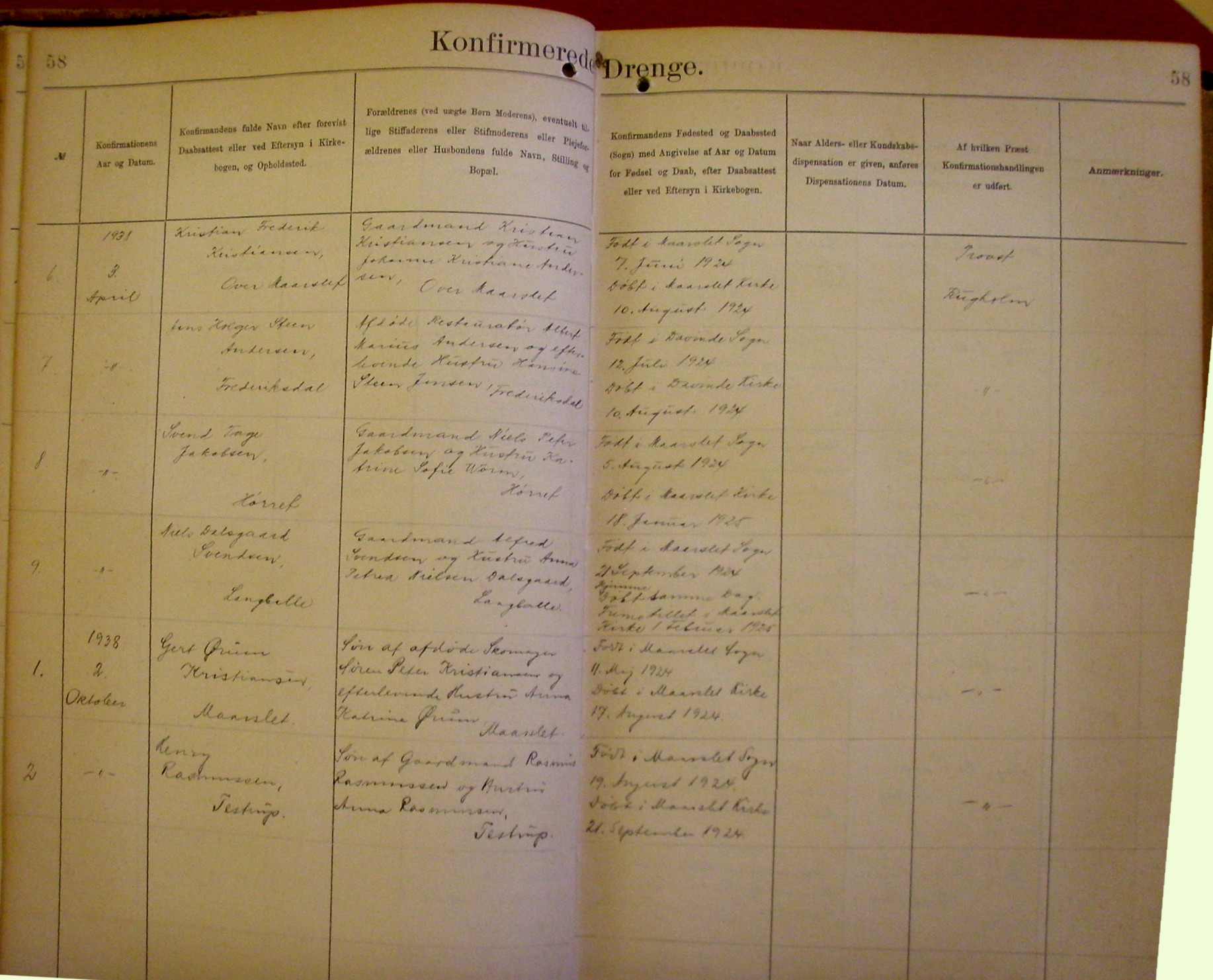 Side 58. 1938. Konfirmerede DRENGE