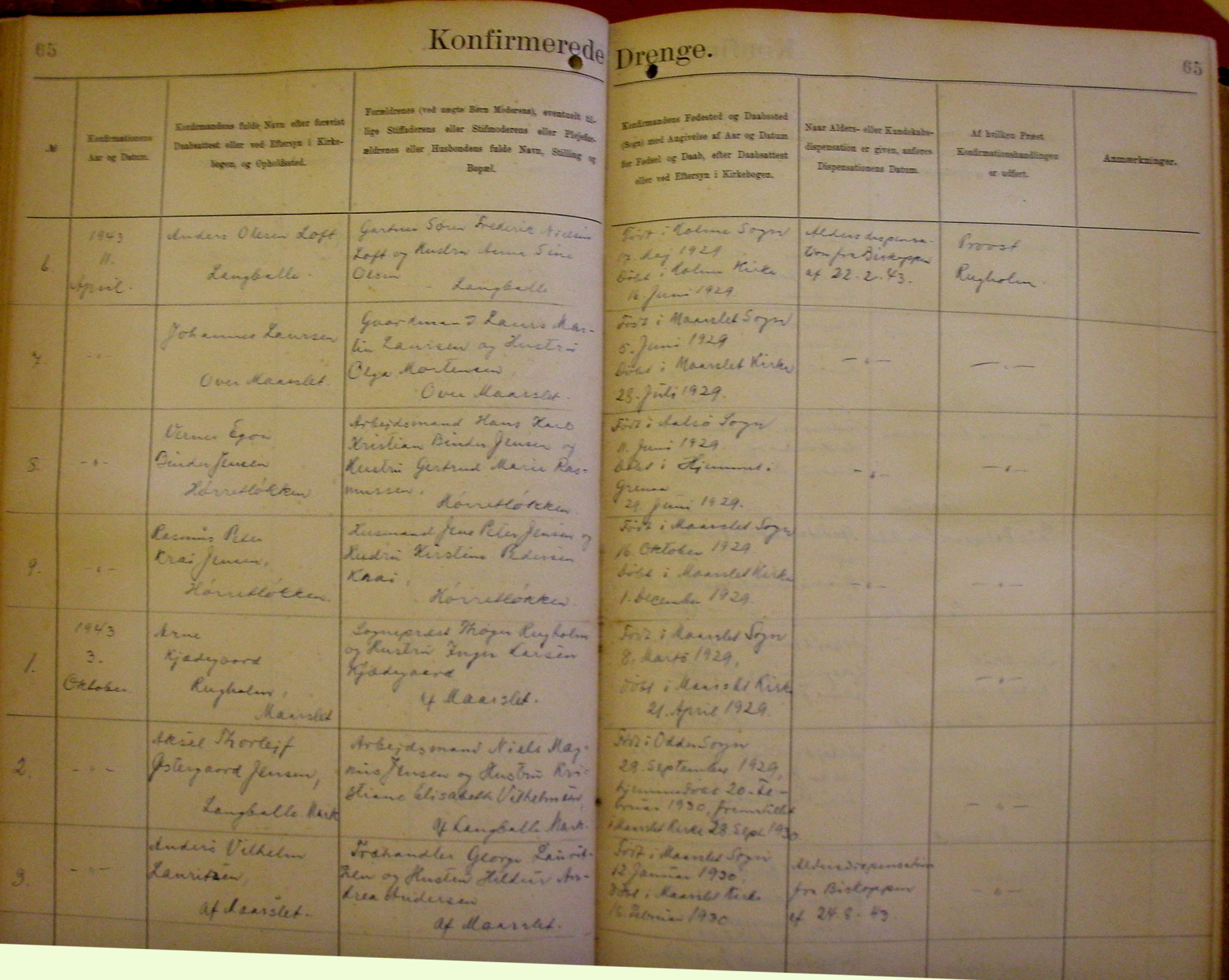 Side 65. 1943. Konfirmerede DRENGE