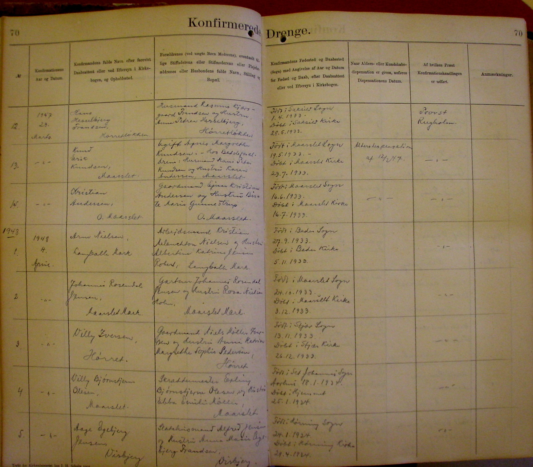 Side 70. 1947-1948. Konfirmerede DRENGE