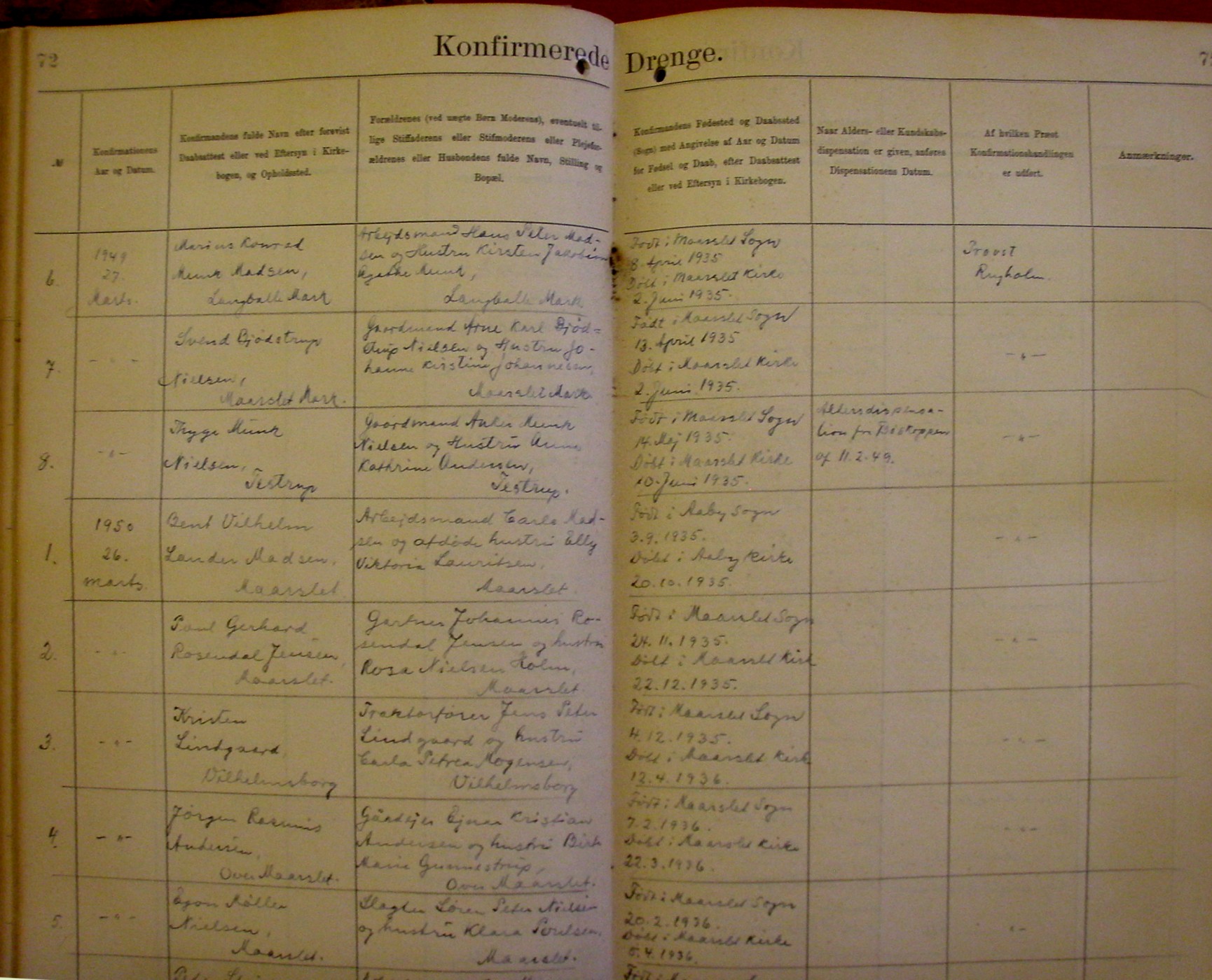 Side 72. 1949-1950. Konfirmerede DRENGE