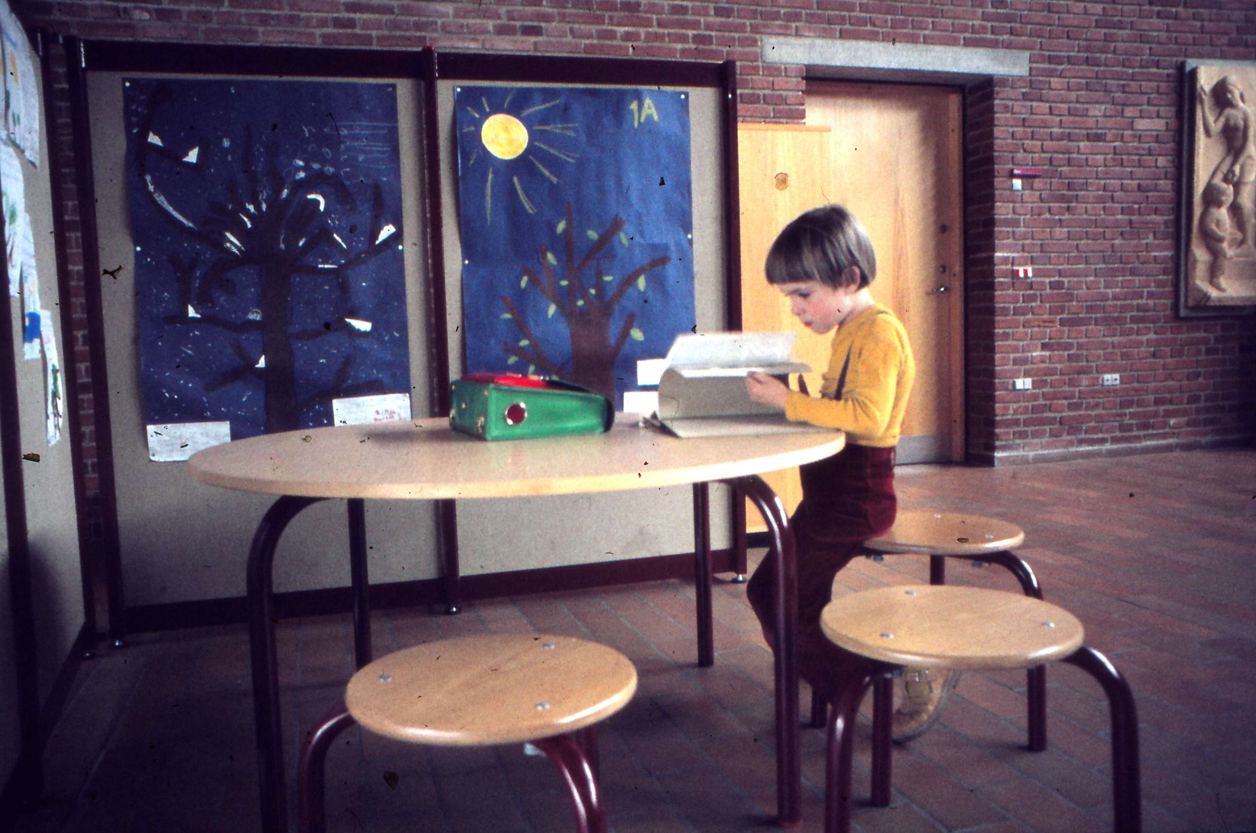 | A-huset. På billedet ses Christoffer Bech, søn af lærer Jens Jørgen Bech. Billed ID: B5310 . Dias opbevares på Mårslet Egnsarkiv Registreret i Arkibas. | |||