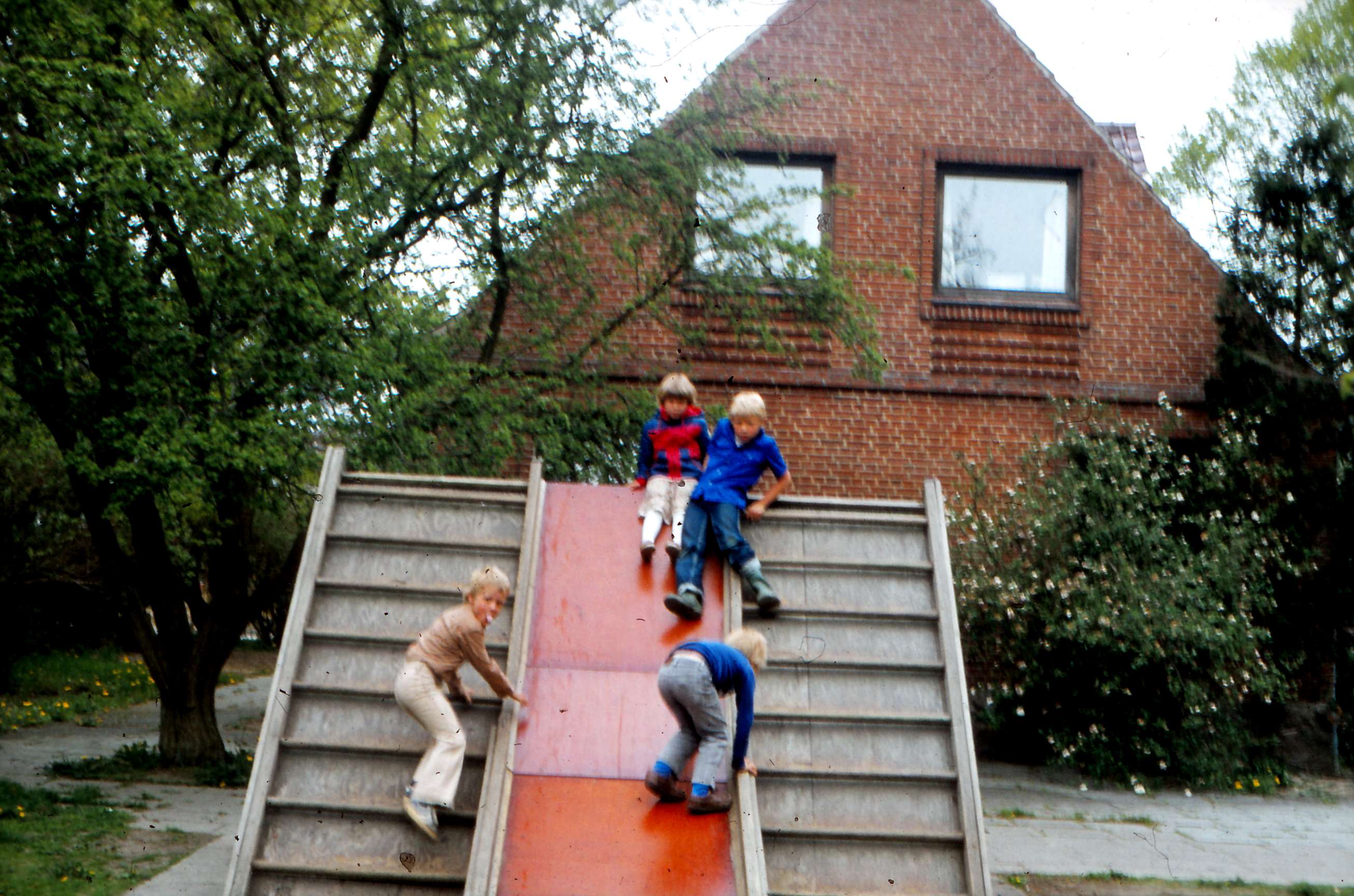 | Legepladsen ved børnehaveklassen. Billed ID: B5318. Dias opbevares på Mårslet Egnsarkiv Registreret i Arkibas. | |||