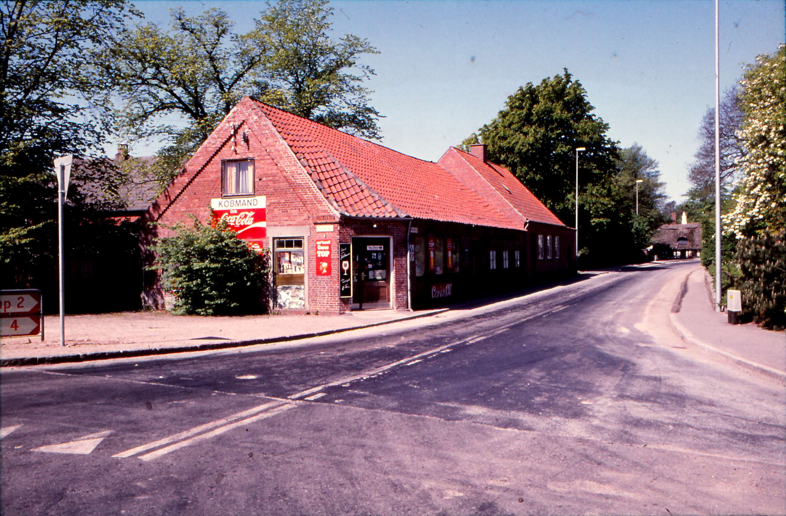 | Obstrupvej. Købmand Siig's butik på hjørnet af Tandervej og Obstrupvej. Obstrupvej 5, 'Åbo' i baggrunden. Billed ID: B5329. Dias opbevares på Mårslet Egnsarkiv Registreret i Arkibas. | |||