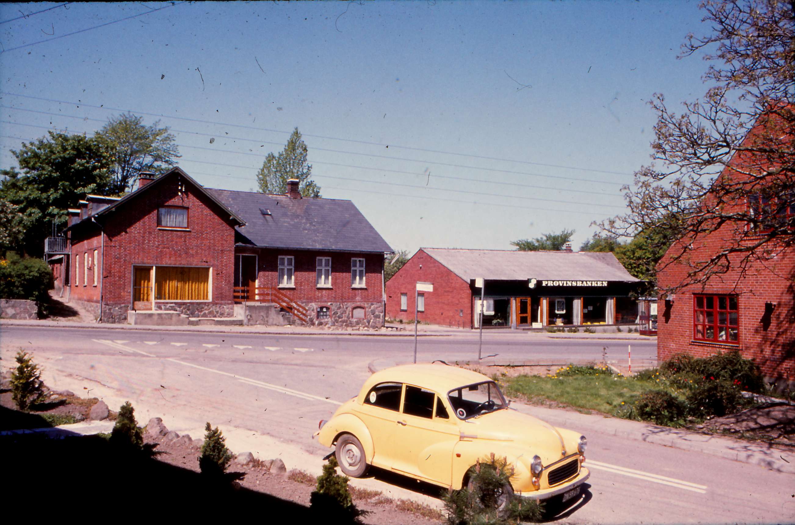 | Tandervej og Eskegårdsvej. Tandervej 6B til venstre og Tandervej 6A, Provinsbanken, set fra Eskegårdsvej. Helt til højre på billedet ses Tandervej 5. . Billed ID: B5332. Dias opbevares på Mårslet Egnsarkiv Registreret i Arkibas. | |||