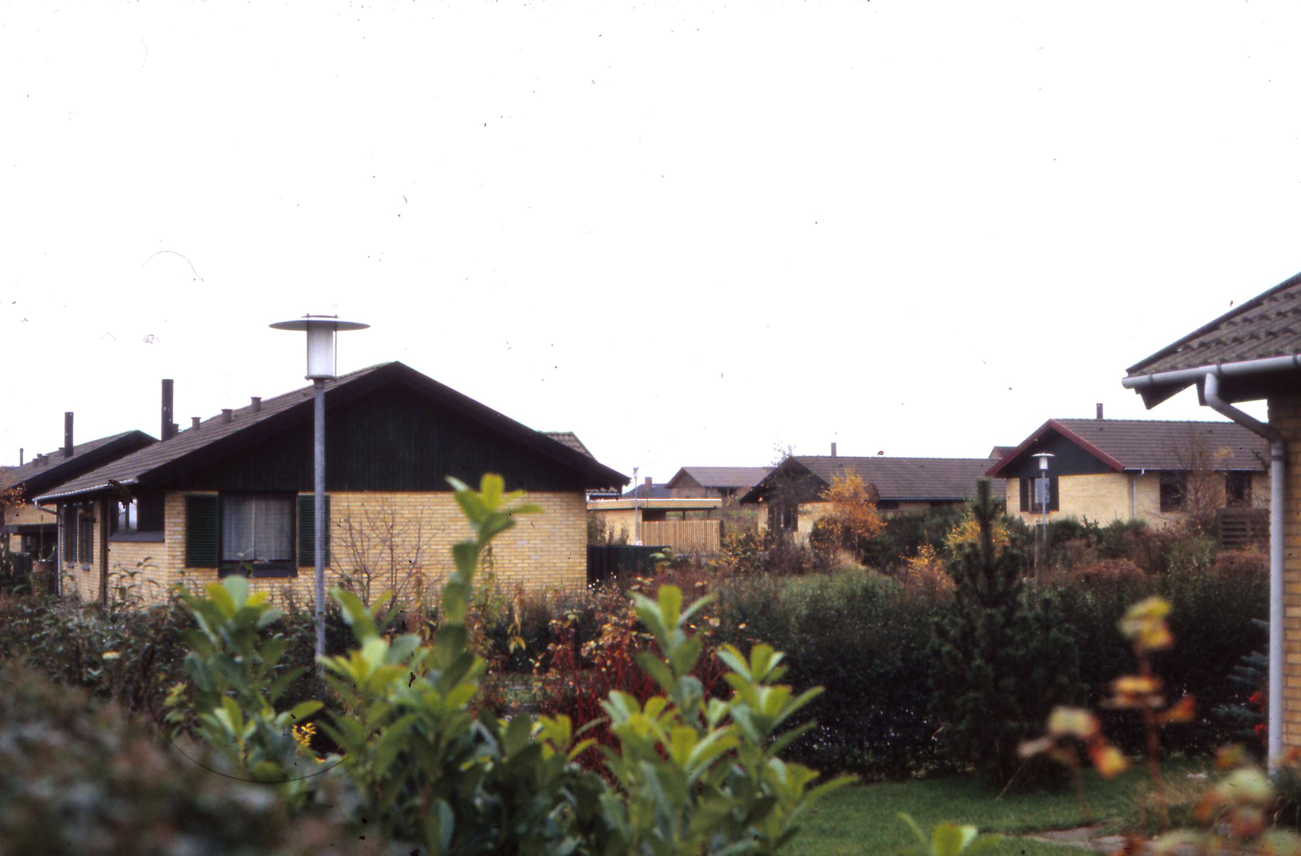 | Gyldenkronevej taget fra området bag den gamle busendestation på Tandervej. Måske fra lærer Knud Søndergaards have. Han bor der. Billedet taget fra Bedervej over Gyldenkronesvej nr. 2's have mod Gyldenkronesvej 1, som er huset med vindue og skodder i gavlen. Billed ID: B5346. Dias opbevares på Mårslet Egnsarkiv Registreret i Arkibas. | |||