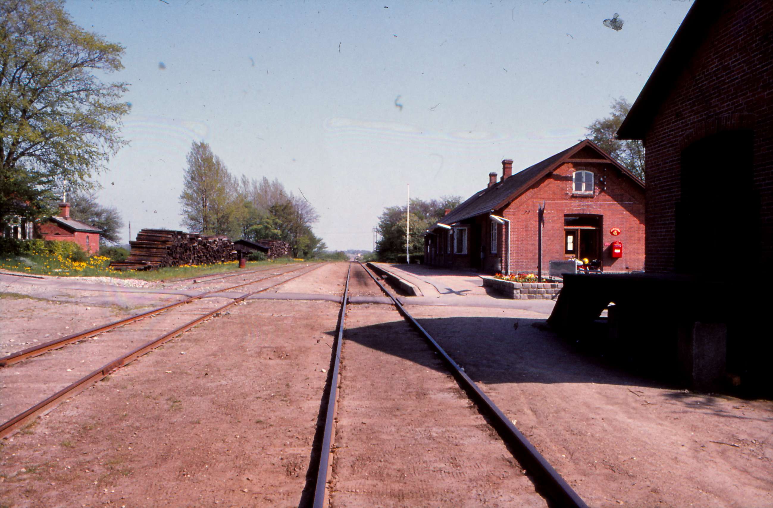 | Stationen. 'Oddergrisen' på Mårslet Station. Til højre ses stationens Pakhus, nu nedrevet. Billed ID: B5355. Dias opbevares på Mårslet Egnsarkiv Registreret i Arkibas. | |||