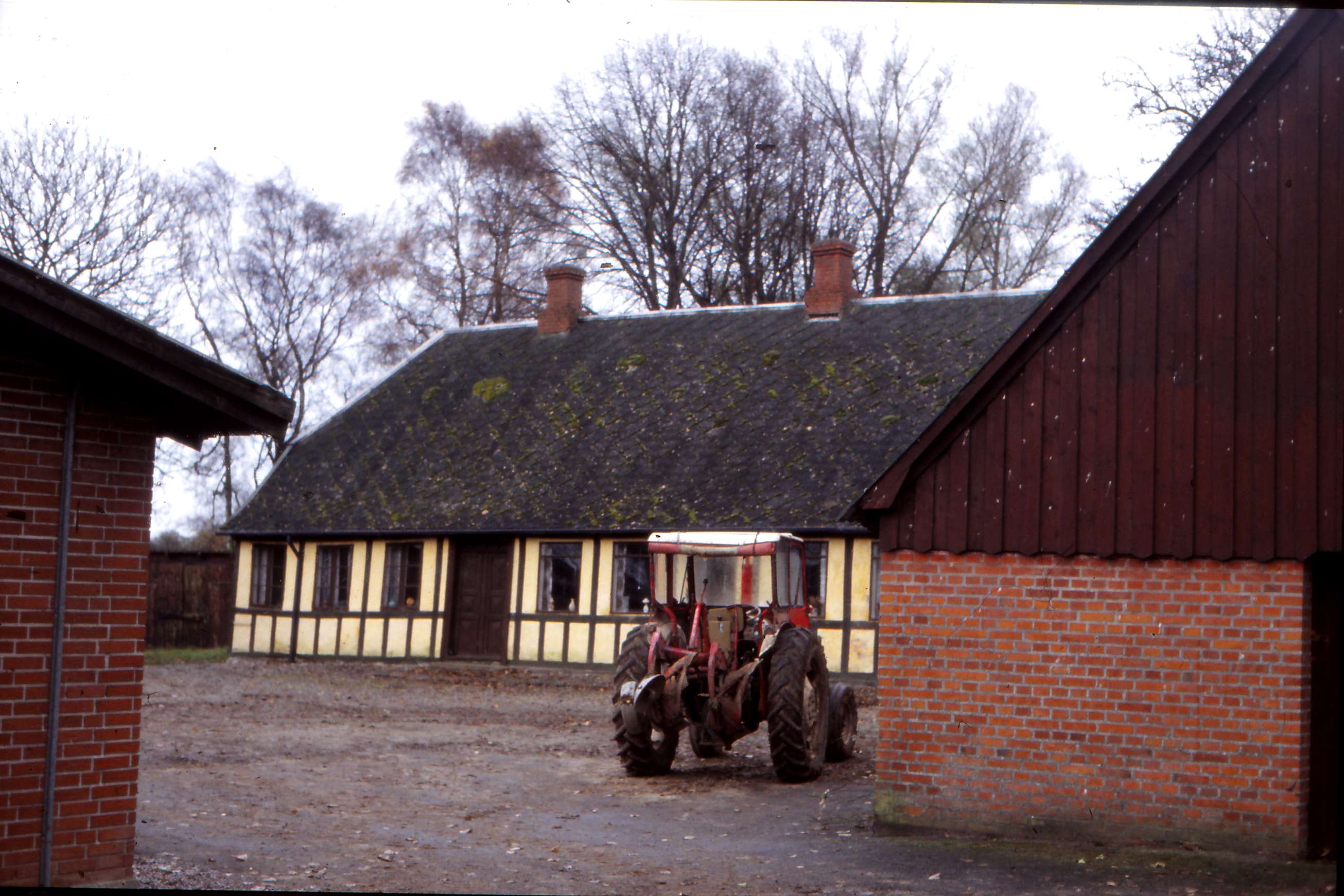 | Eskegårdsvej. Jens Olesens gård på Eskegårdsvej, som han siden hen overdrog til sin søn Karl Frederik Olesen. Stuehuset er fra 1848, men alle øvrige længer har været brændt og de er derfor nyopførte. Billed ID: B5360. Dias opbevares på Mårslet Egnsarkiv Registreret i Arkibas. | |||