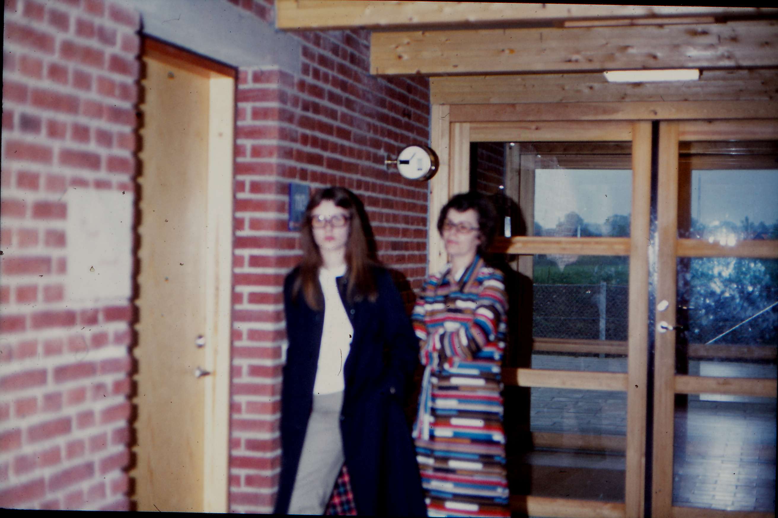 | Mårslet Skole. A-huset. Forældrekonsultation. Forældresamtale. Mette Thers-Jørgensen ankommer. Billed ID: B5363. Dias opbevares på Mårslet Egnsarkiv Registreret i Arkibas. | |||