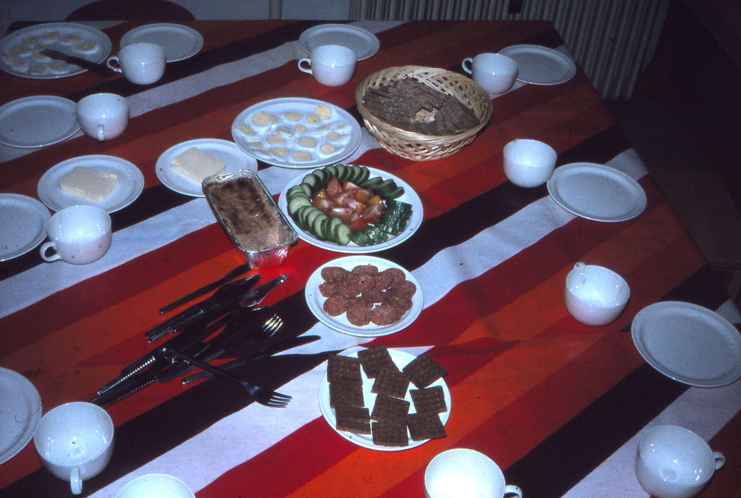 | Banevej. Borgerhuset. Børnehuset Valnødden bor til leje i Borgerhuset. Så er der dækket op til frokost til børnene i Valnødden. Billed ID: B5386. Dias opbevares på Mårslet Egnsarkiv Registreret i Arkibas. | |||