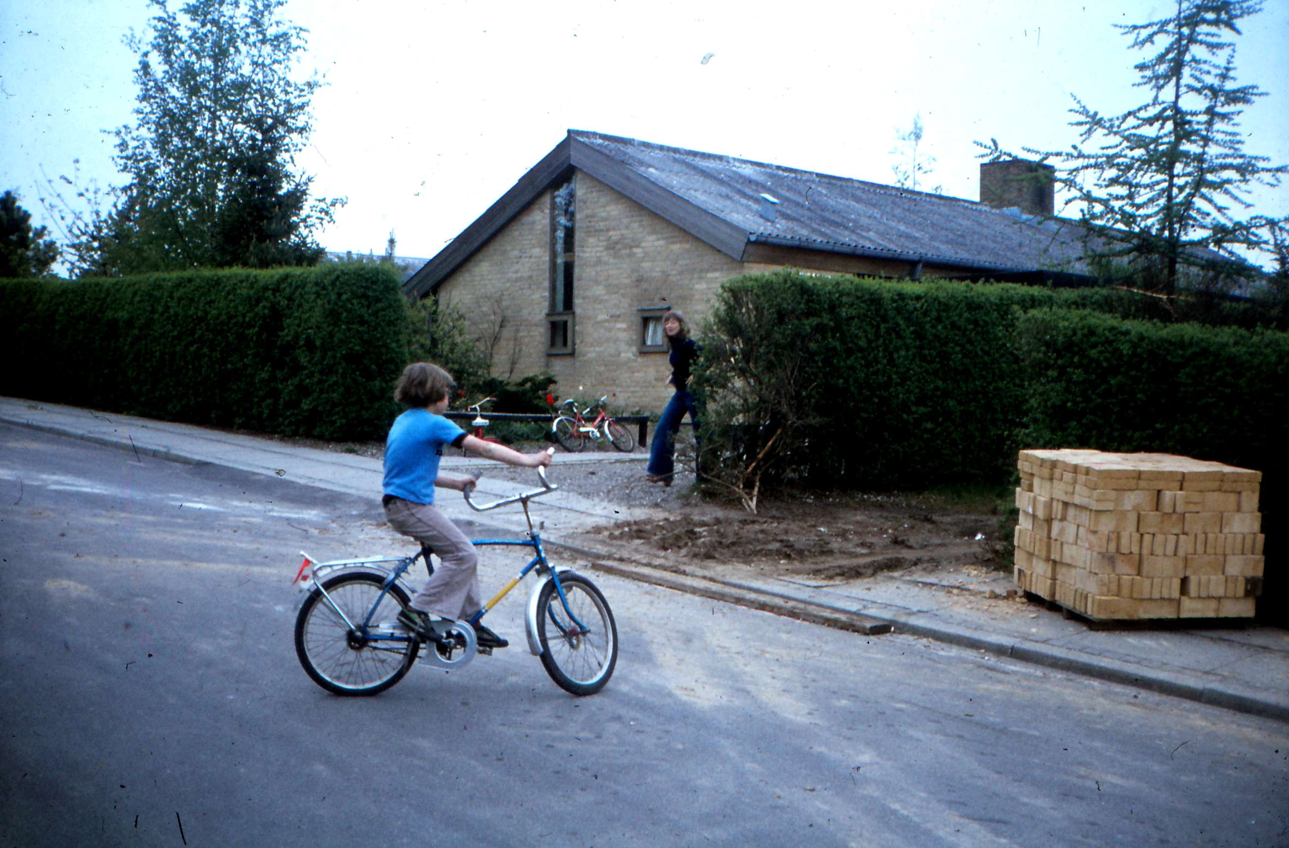 | Mårslet. Åbakken. Billedet er fra Åbakken der var en af Mårslets første udstykninger. Cyklisten kunne være Søren Houlberg Nielsen (nu Houlberg Smerup) Billed ID: B5410. Dias opbevares på Mårslet Egnsarkiv Registreret i Arkibas. | |||