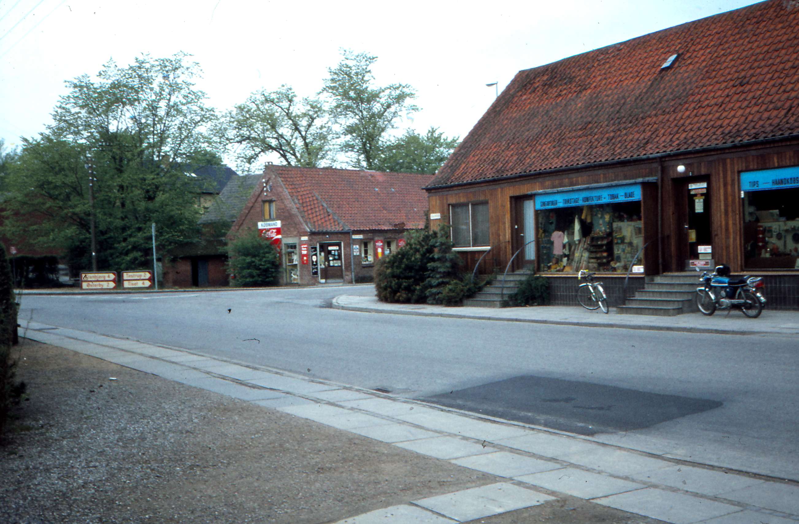 | Hørretvej. Hørretvej 1, 'Justers butik' og i baggrunden Tandervej 2 (Obstrupvej 1), Købmand Siigs forretning. Billed ID: B5435. Dias opbevares på Mårslet Egnsarkiv Registreret i Arkibas. | |||