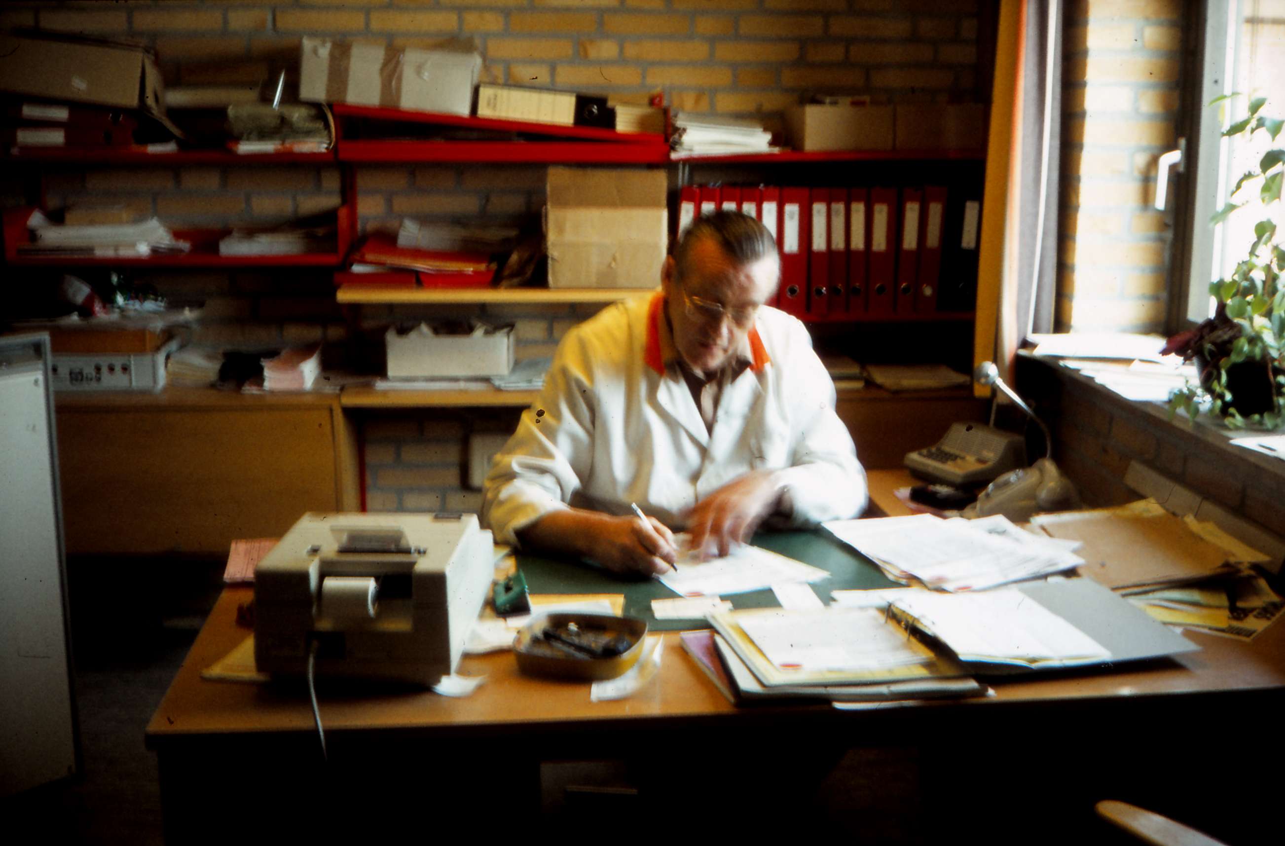 | Hørretvej 12. Brugsen. På billedet ses brugsuddeler Gunnar Oxvig Enevoldsen. Billed ID: B5441. Dias opbevares på Mårslet Egnsarkiv Registreret i Arkibas. | |||