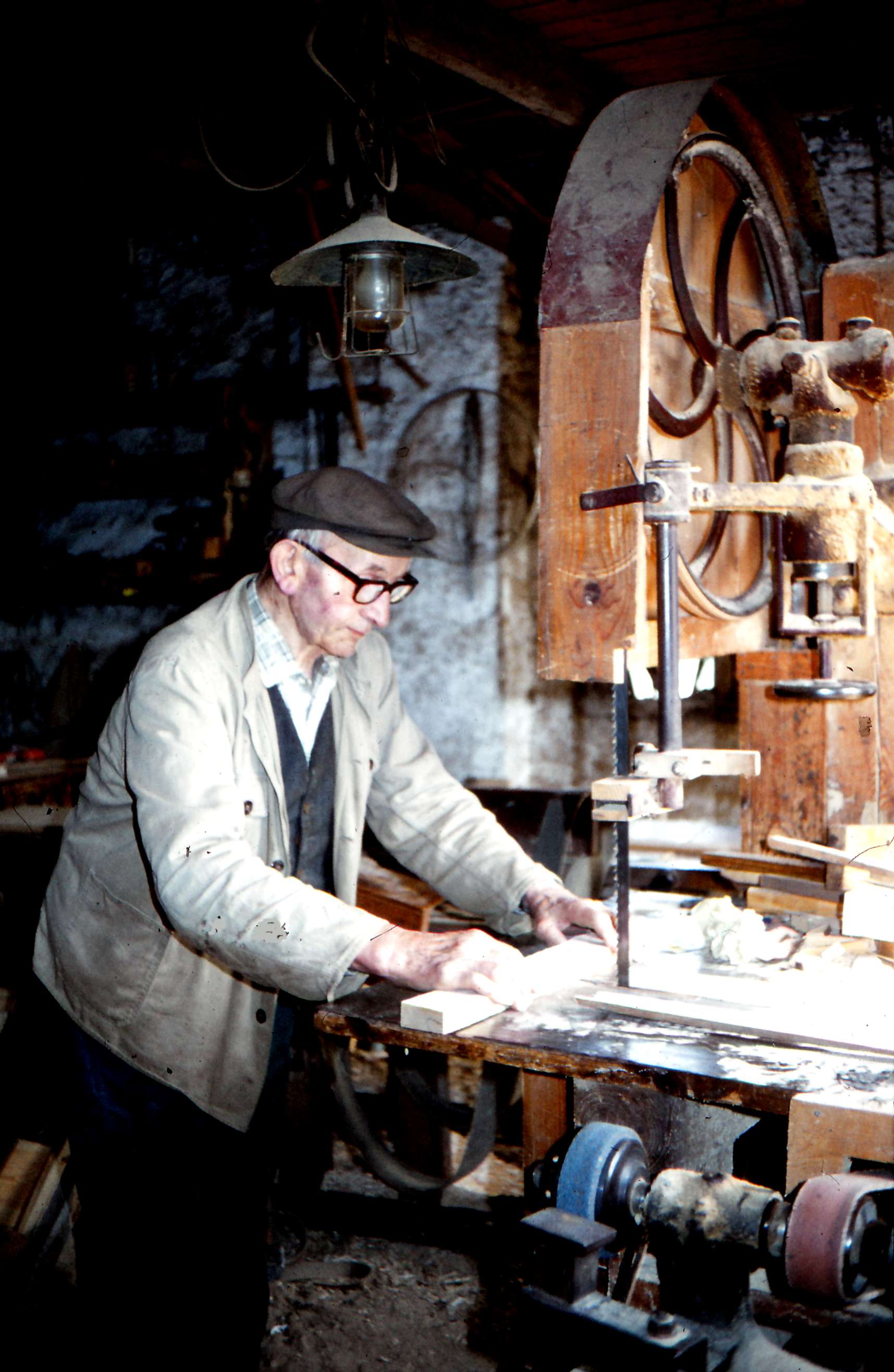 | Tandervej 24. Karetmagerværksted. På billedet ses karetmager Niels Hansen ved båndsaven Billed ID: B5454. Dias opbevares på Mårslet Egnsarkiv Registreret i Arkibas. | |||