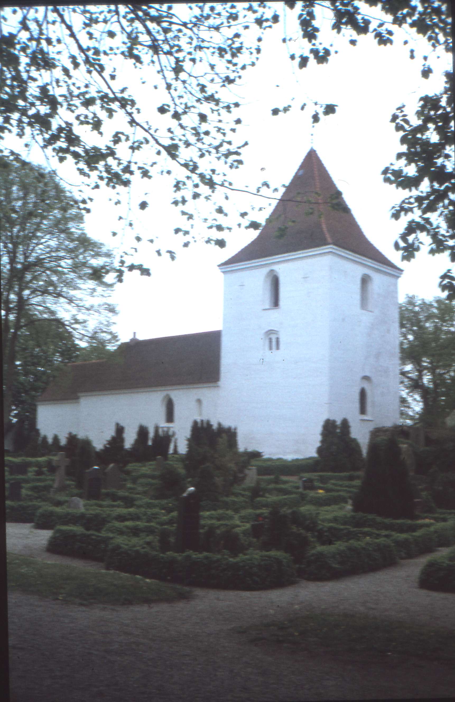 | Mårslet Kirke. Mårslet Kirke set fra nordvest på kirkegården. Billed ID: B5466. Dias opbevares på Mårslet Egnsarkiv Registreret i Arkibas. | |||