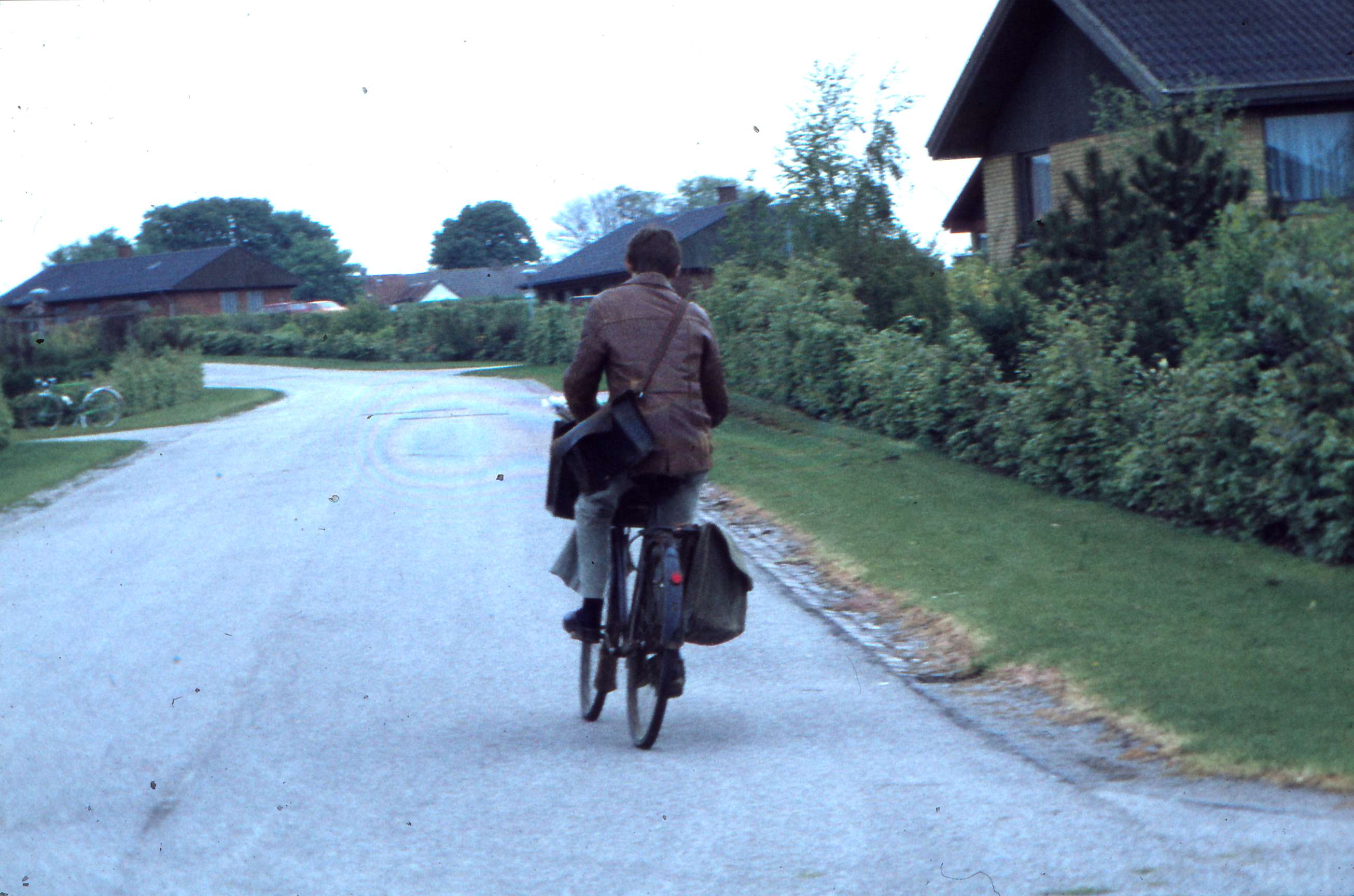 | Mårslet. Hvor? Postuddeling. På billedet ses ferieafløser Orla Svendsen. Billed ID: B5478. Dias opbevares på Mårslet Egnsarkiv Registreret i Arkibas. | |||