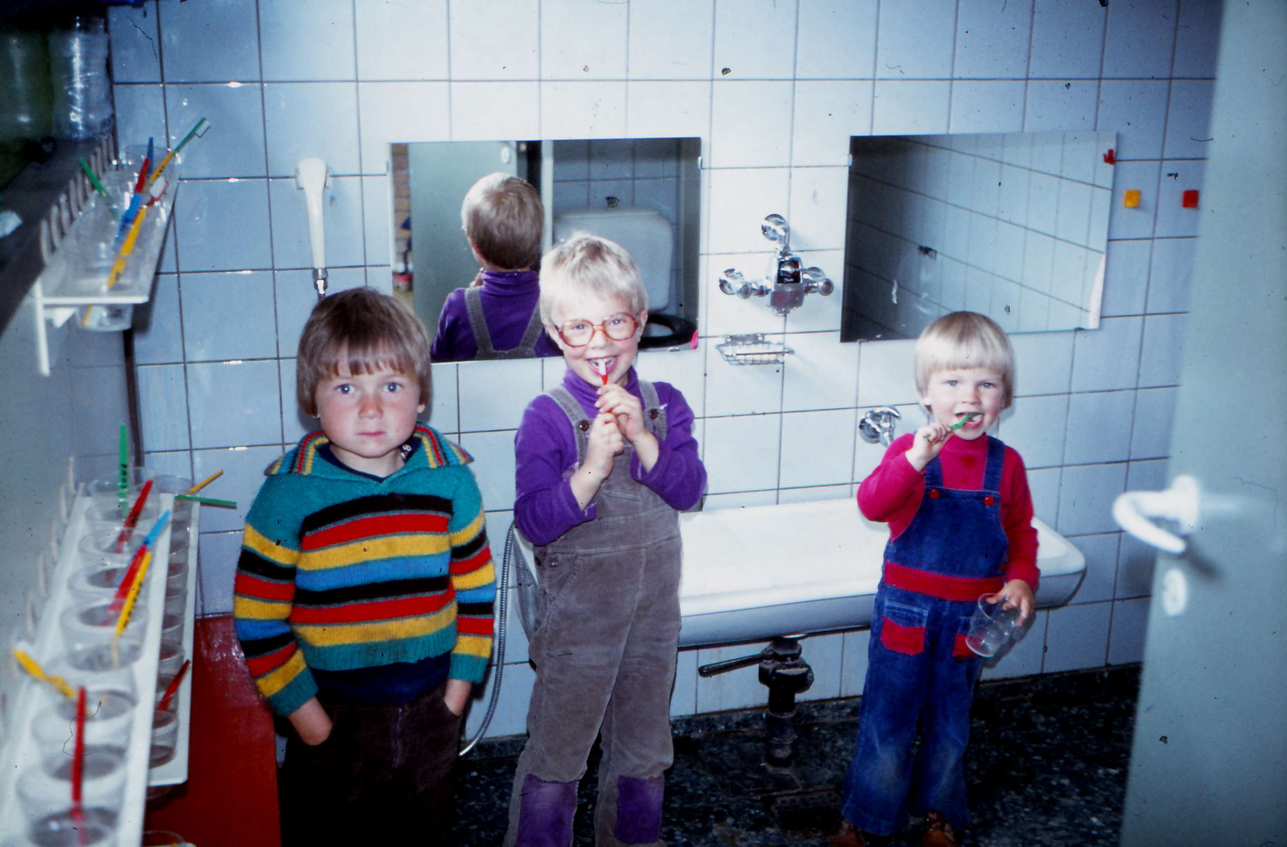 | Så skal der børstes tænder efter endt frokost. Billed ID: B5488. Dias opbevares på Mårslet Egnsarkiv Registreret i Arkibas. | |||