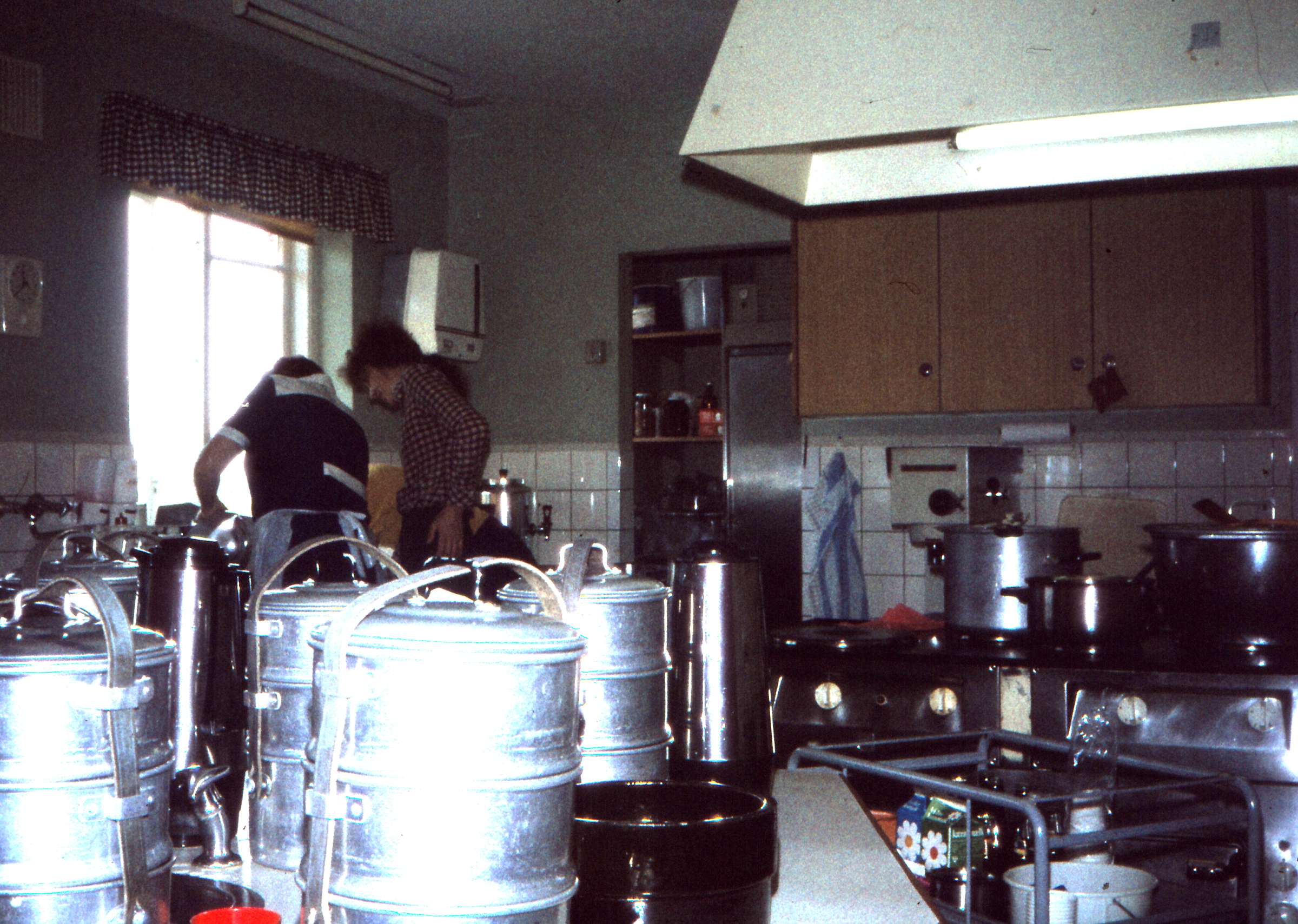| Langballevej 3. Mårslet Plejehjem & Pensionistcenter. Køkkenet. Forberedelse til frokost. Billed ID: B5525. Dias opbevares på Mårslet Egnsarkiv Registreret i Arkibas. | |||