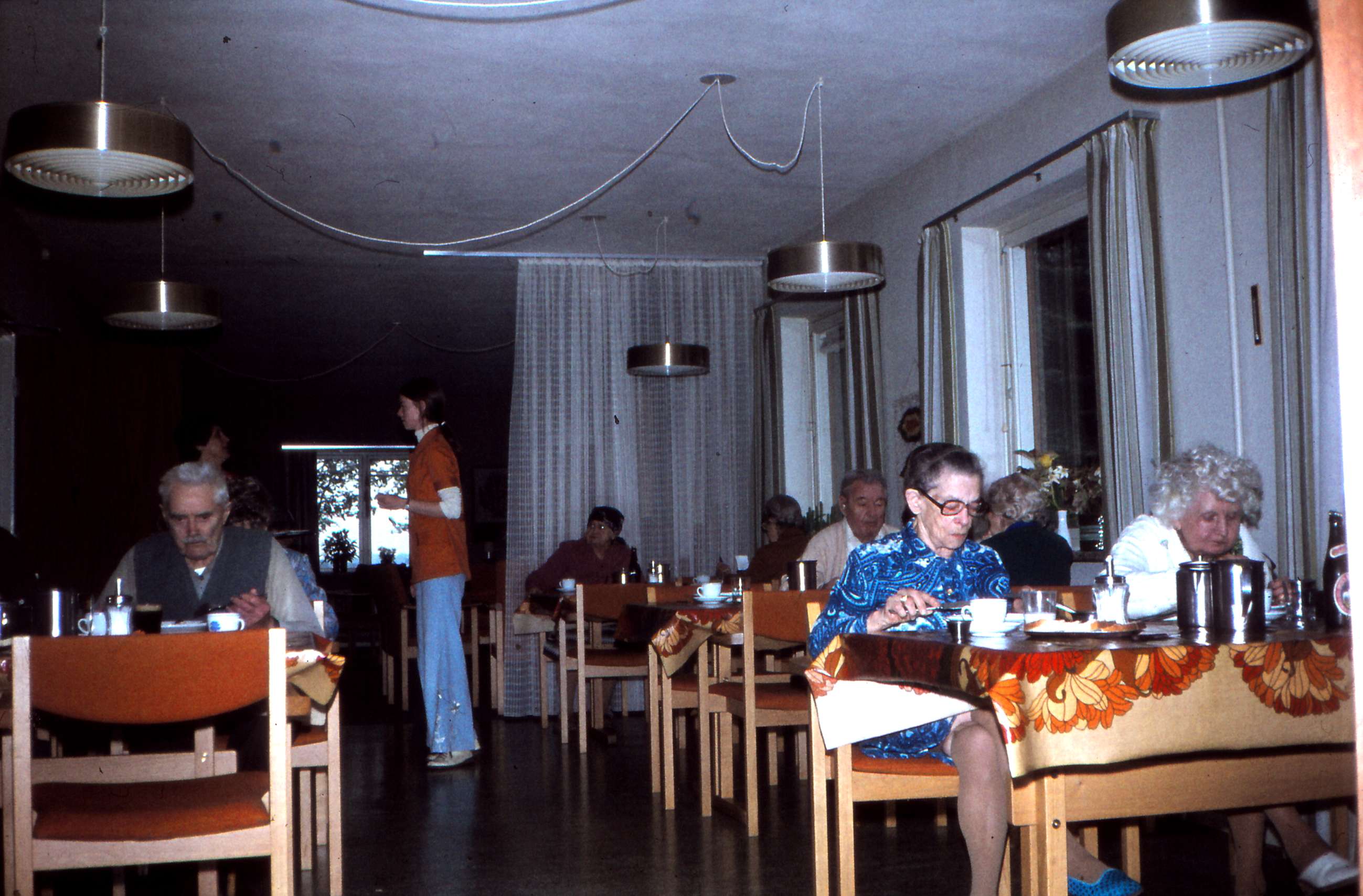 | Langballevej 3. Mårslet Plejehjem & Pensionistcenter. Spisestuen. På billedet ses? Billed ID: B5527. Dias opbevares på Mårslet Egnsarkiv Registreret i Arkibas. | |||