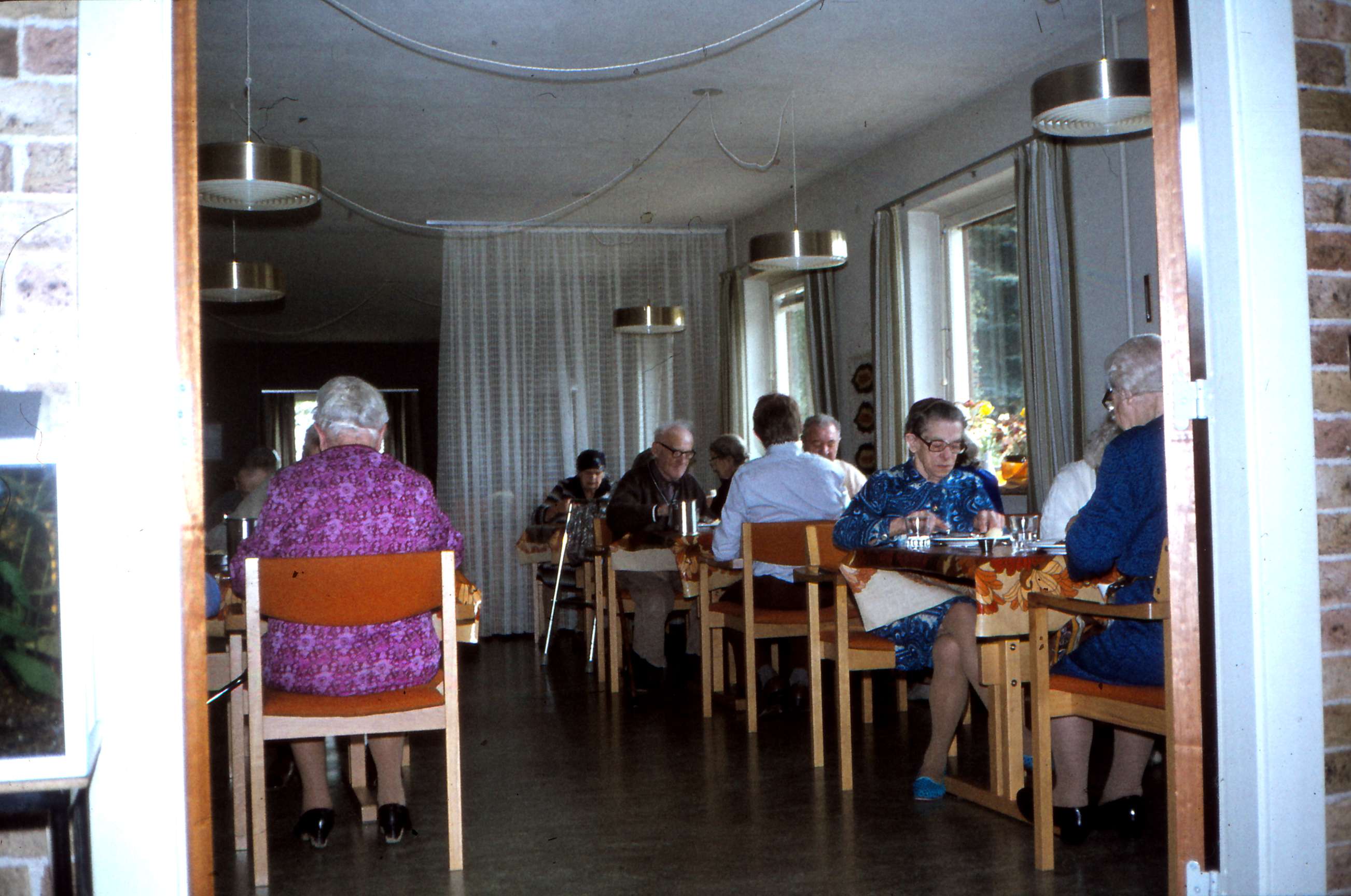 | Langballevej 3. Mårslet Plejehjem & Pensionistcenter. Servering i spisestuen. På billedet ses? Billed ID: B5530. Dias opbevares på Mårslet Egnsarkiv Registreret i Arkibas. | |||