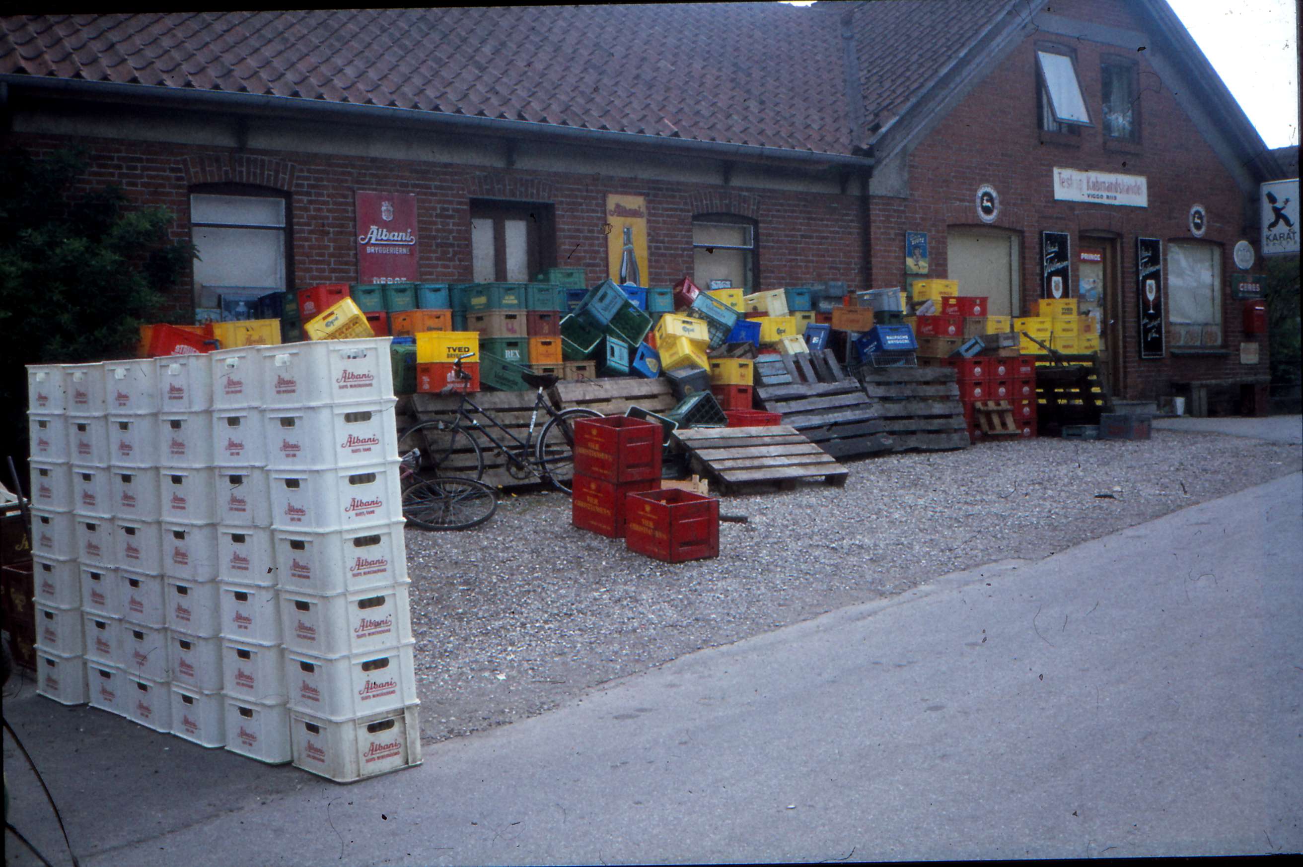 | Butikken blev på et tidspunkt solgt til en købmand, der ikke magtede at drive den, hvorefter den blev overtaget af indkøbsringen Danske Købmænd, som i 1934 solgte købmandshandelen til Viggo Riis, der ejede den i de næste 46 år. Det var Grethe Riis, der passede butikken, mens Viggo kørte landtur med varer, passede sit Albani-depot og en masse andre gøremål, der helt fyldte hans hverdag. Siden 1980 har datteren Søs Inga Benedikte været ejer af Testrup Købmandshandel, der i dag som i forældrenes tid er lagt an på handel med elever fra Højskolen. (Fortsættes på næste billede) Billed ID: B5550. Dias opbevares på Mårslet Egnsarkiv Registreret i Arkibas. | |||