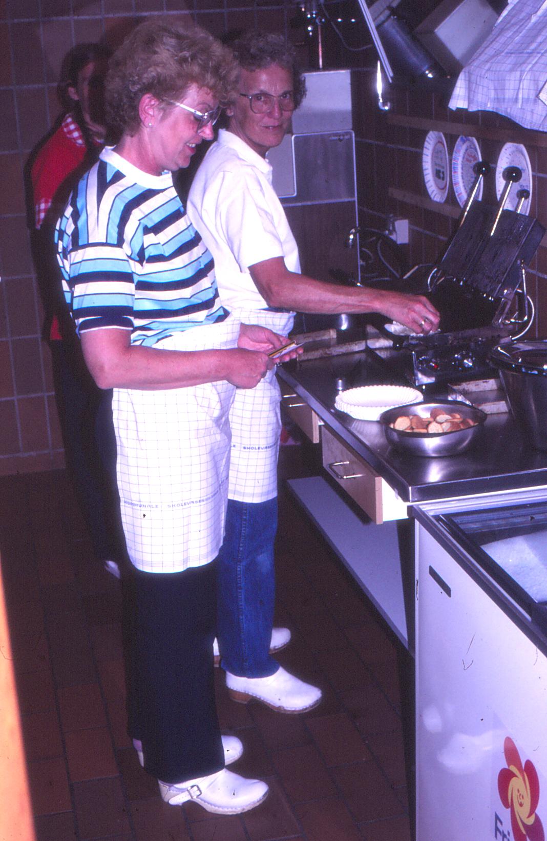Mårslet Skole. Kantinen. Inge Røddik, forrest og Eva Svejborg.