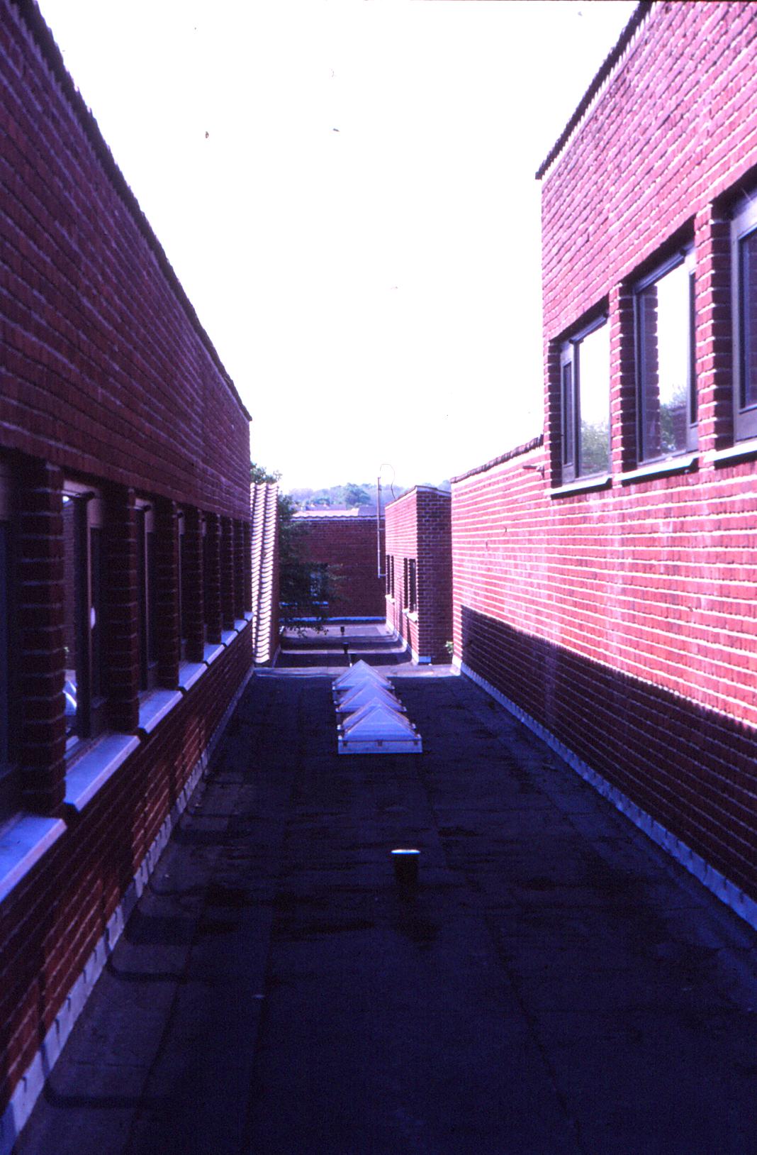 Mårslet Skole. B-huset set fra taget på mellemgangen.