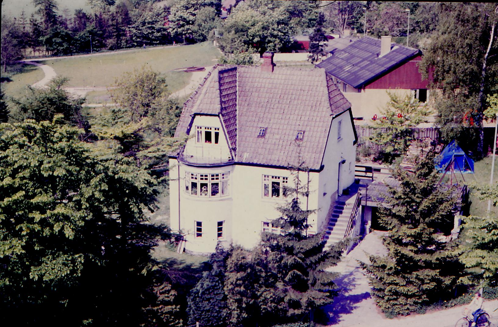 Huset i forgrunden er Obstrupvej 7. Bagved ses 'Midgården' Mårslet Ungdomsklub Testrupvej 1.