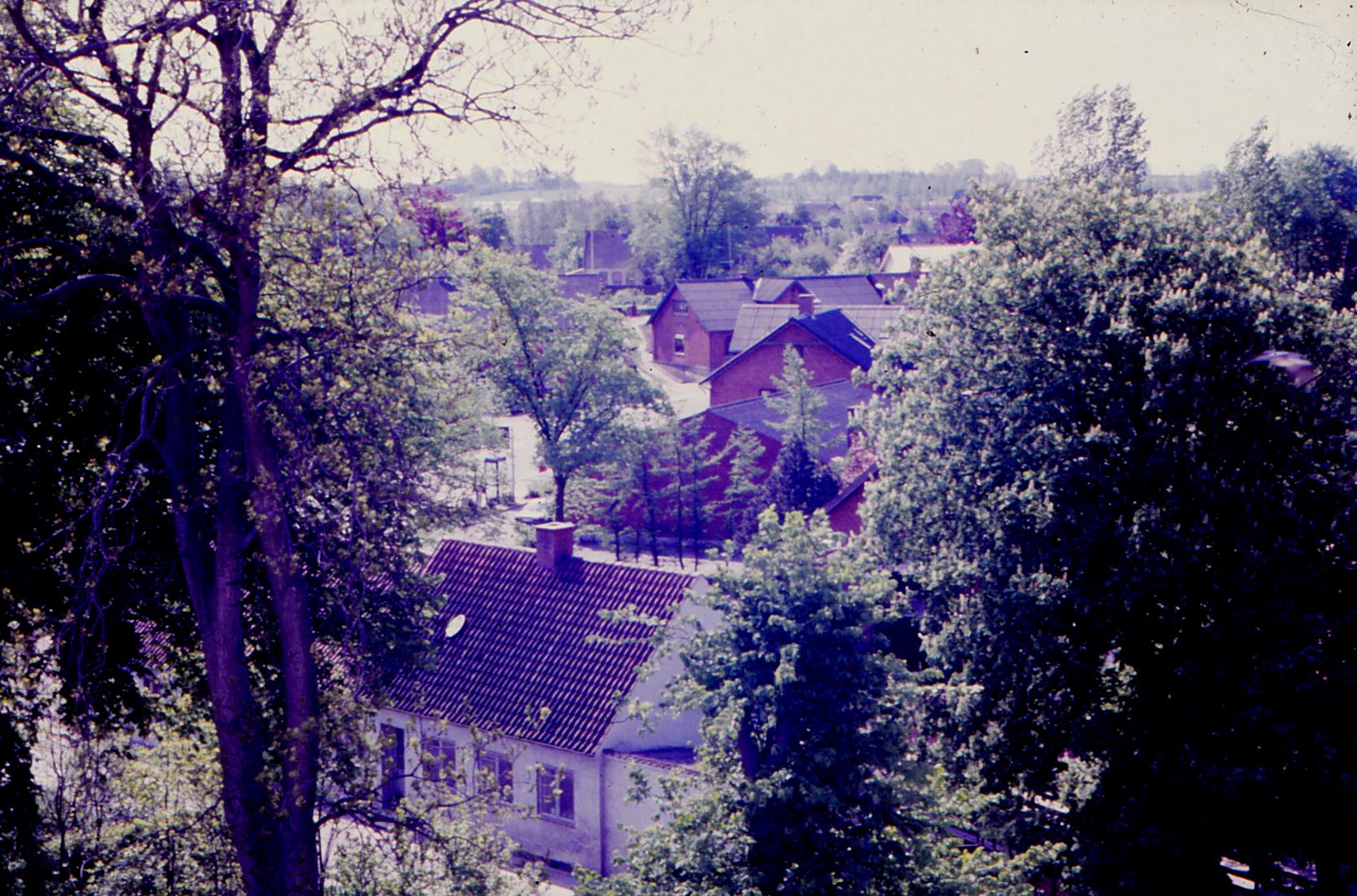 Mårslet set fra Mårslet Kirkes kirketårn. Kik ned over kirkegården.