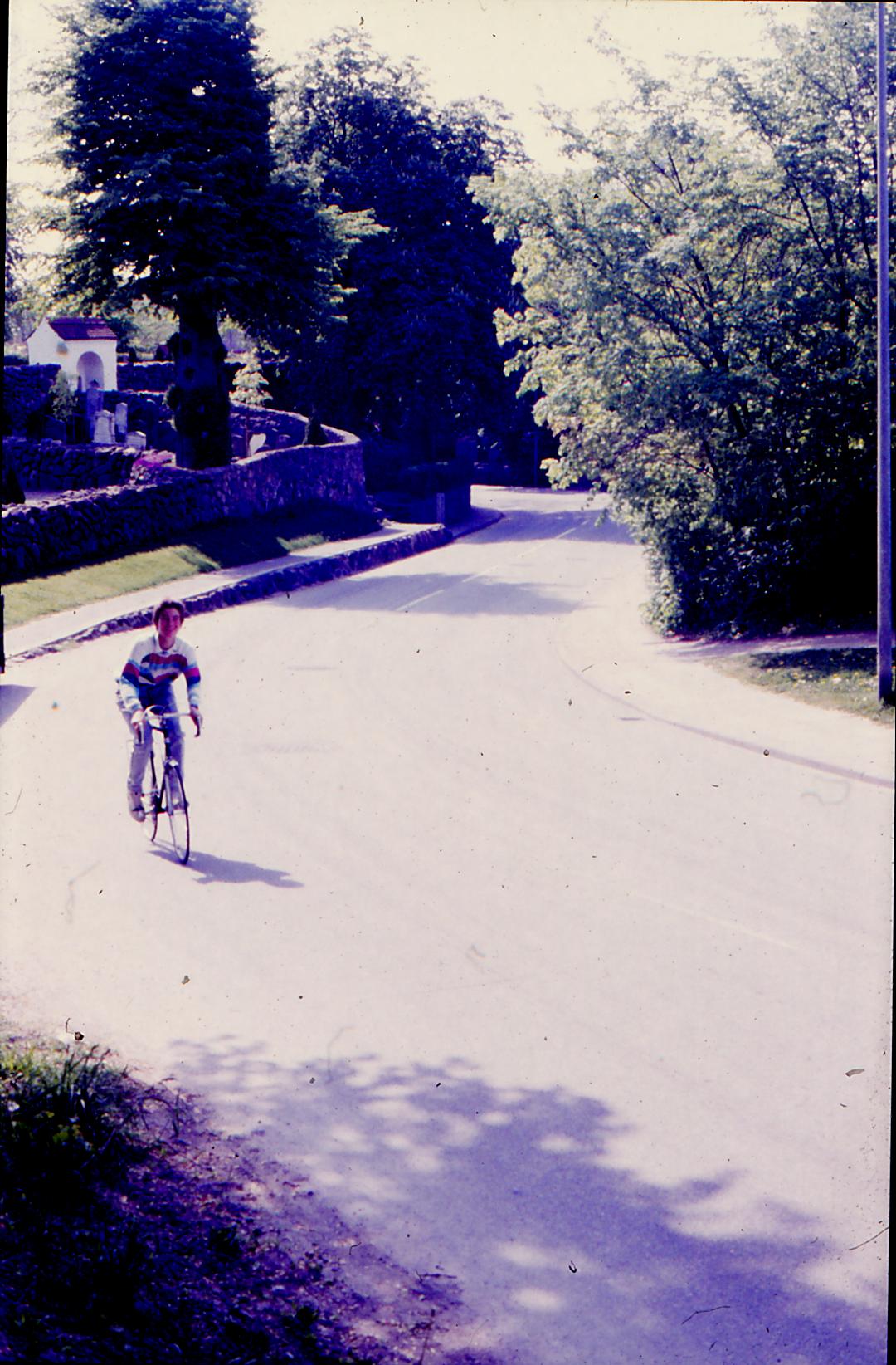Obstrupvej. I hjørnet indenfor kirkegårdsdiget ses 'Lapidariet' med gravsten fra nedlagte gravsteder.