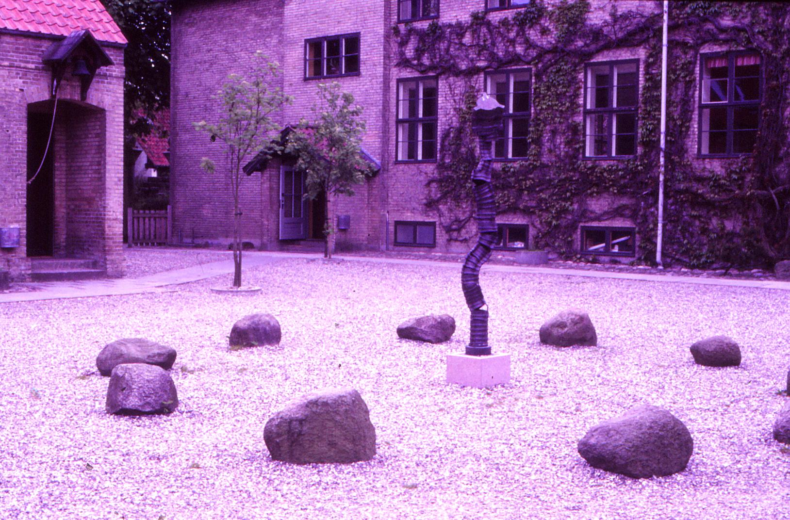 Billedbeskrivelse: Testrup Højskole. Skulpturen hedder Metamorfose.