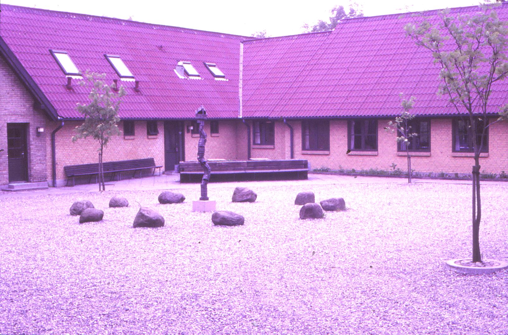 Billedbeskrivelse: Testrup Højskole. Skulpturen hedder Metamorfose.