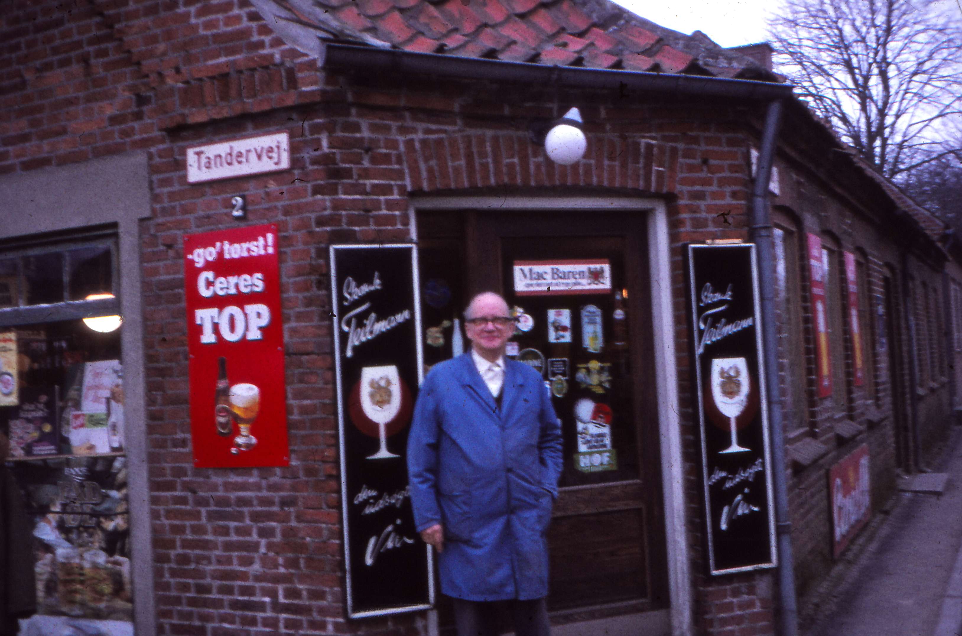 Købmand Siig foran hans butik Tandervej 2 (Nuværende Obstrupvej 2).