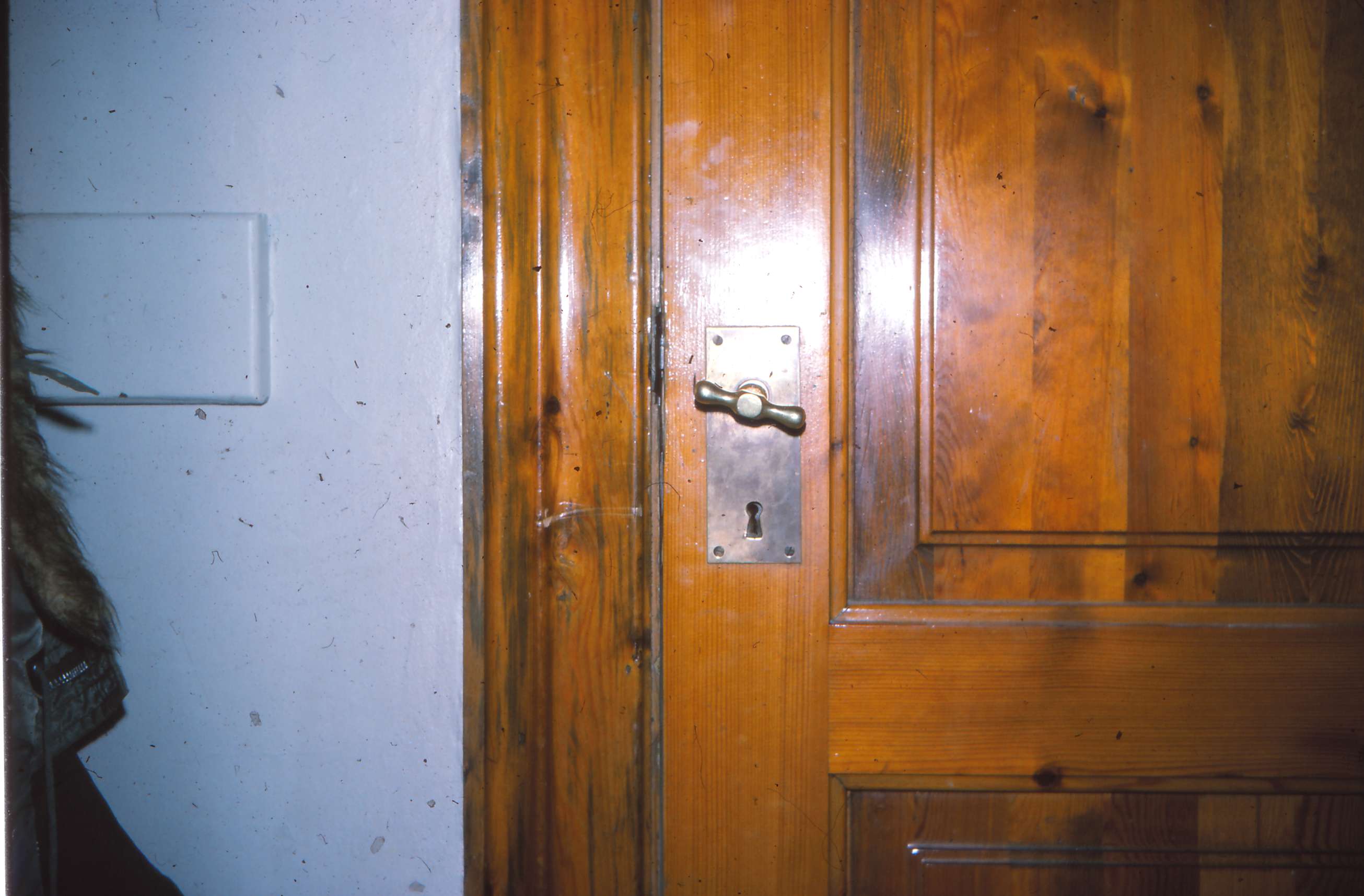 | Digtet: 'Mårslet Skole' - vers 5. _32_ Et gammelt håndtag på en dør det er nok fra 1940 gamle borde og stole nogle af dem de er store. _33_ Se billedet større - tryk på billedet. | |||