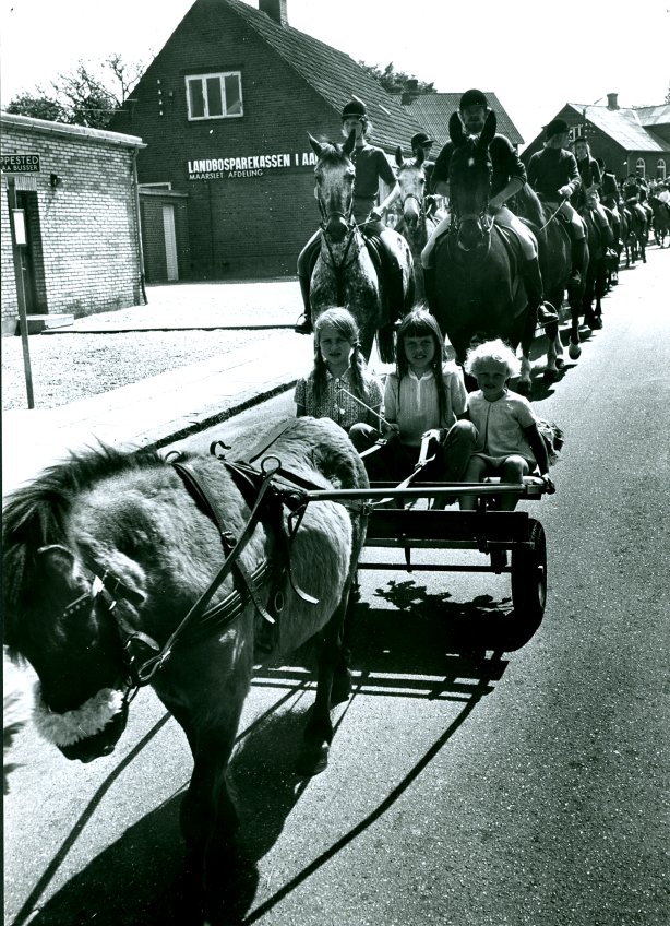 Vibeke Madsen, Gitte Junker og Susanne Thomsen i spidsen for et hesteoptog under Mårslet festuge.