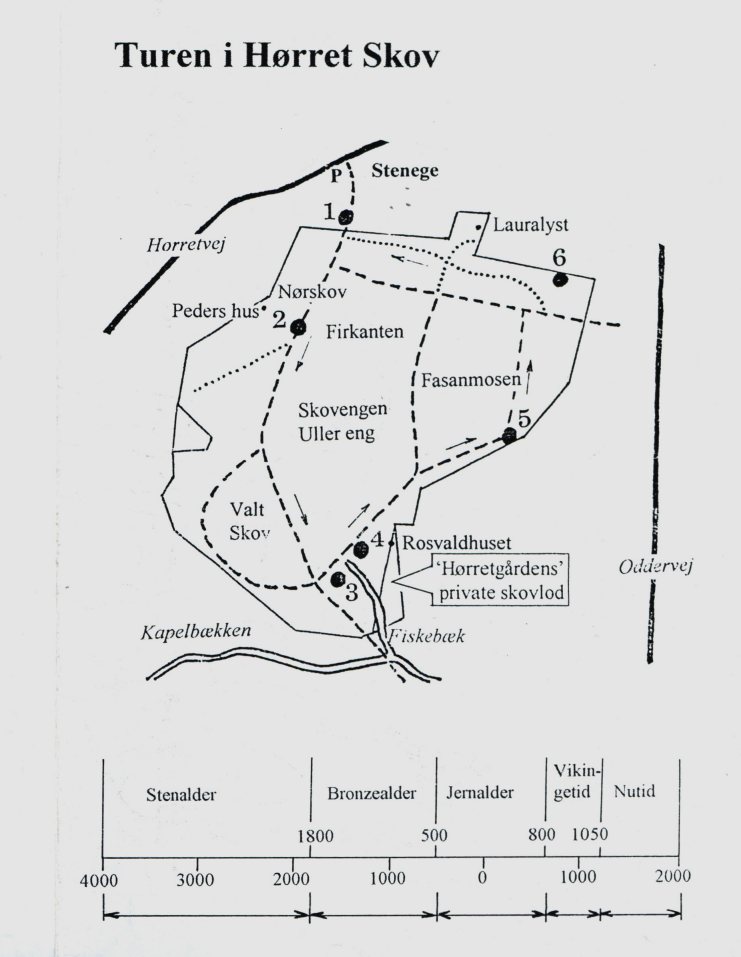 En lokalhistorisk tur i Hørret Skoven 5. maj 2001.