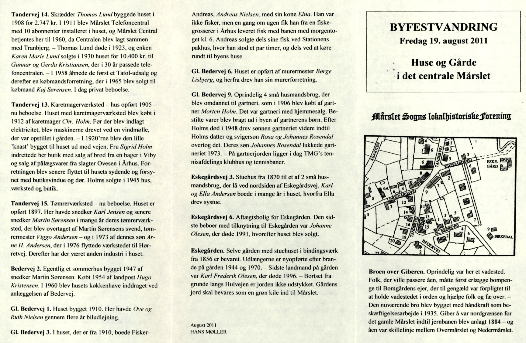 Byvandring i Mårslet 19. august 2011. Huse og gårde i det centrale Mårslet.