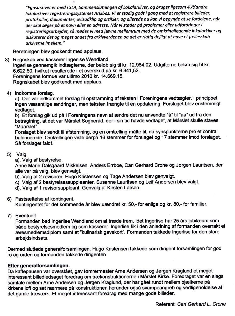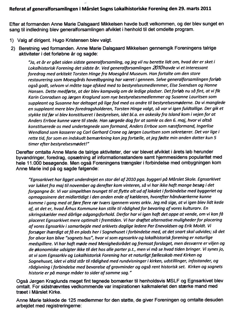 Generalforsamling 2011. 29. marts 2011 i Sognehuset:
