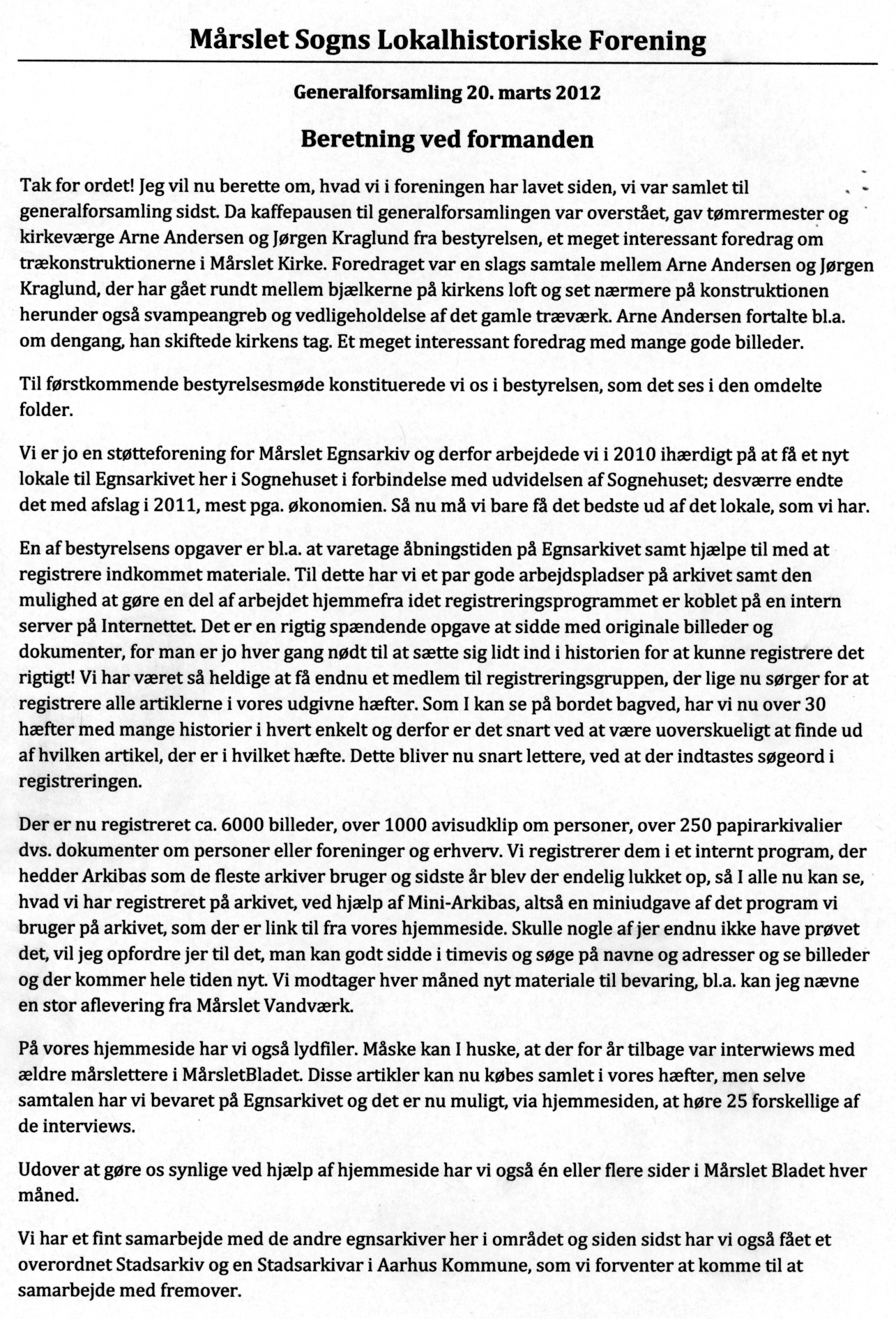 Generalforsamling 20. marts 2012 i Sognehuset: