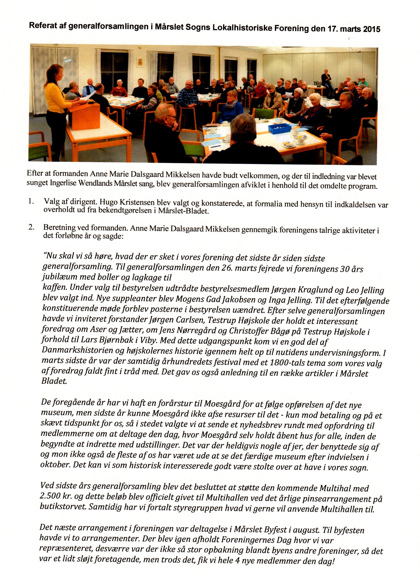 Generalforsamling 17. marts 2015 i Sognehuset: