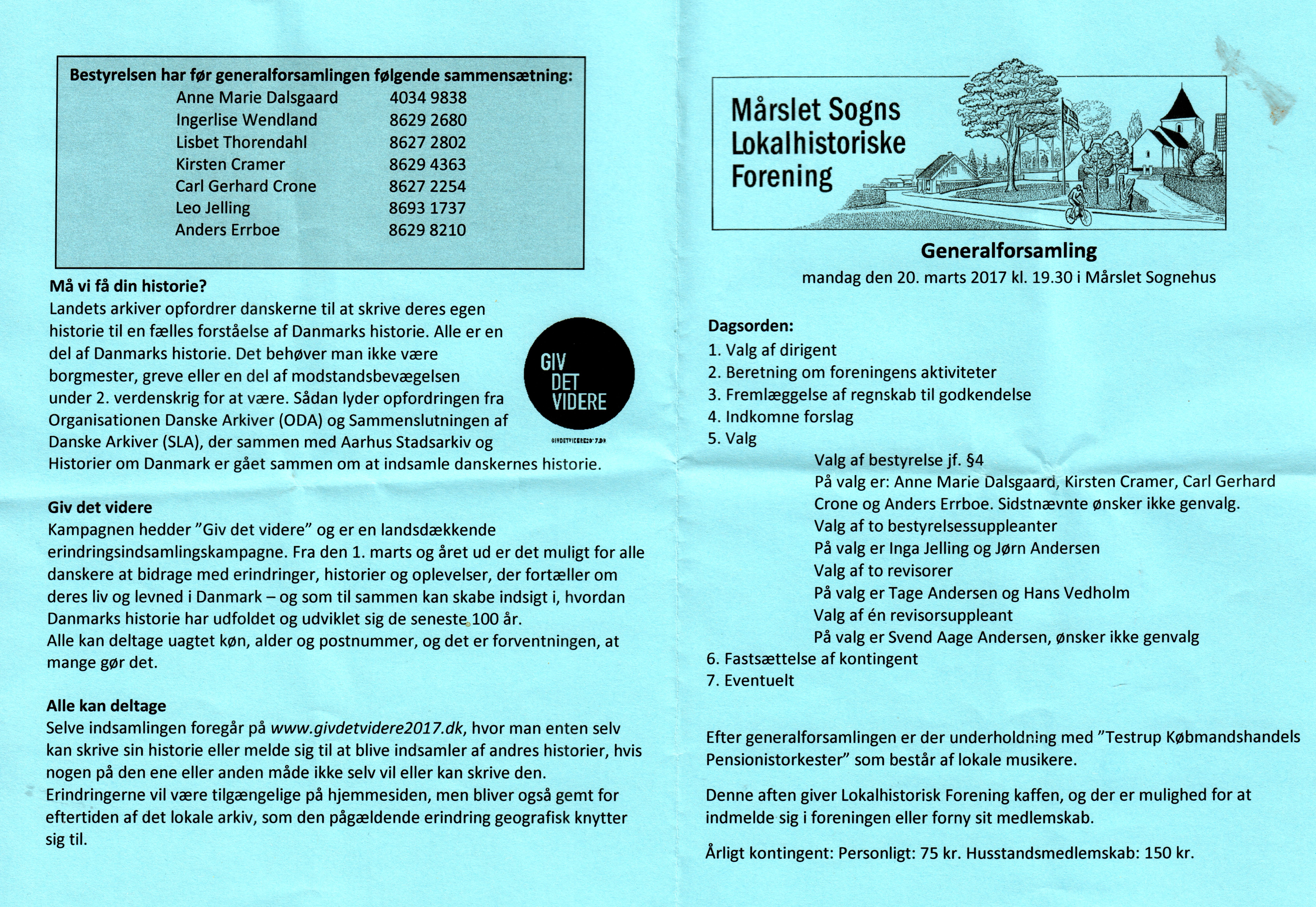 Generalforsamling 2017. 20. marts 2017 i Sognehuset.