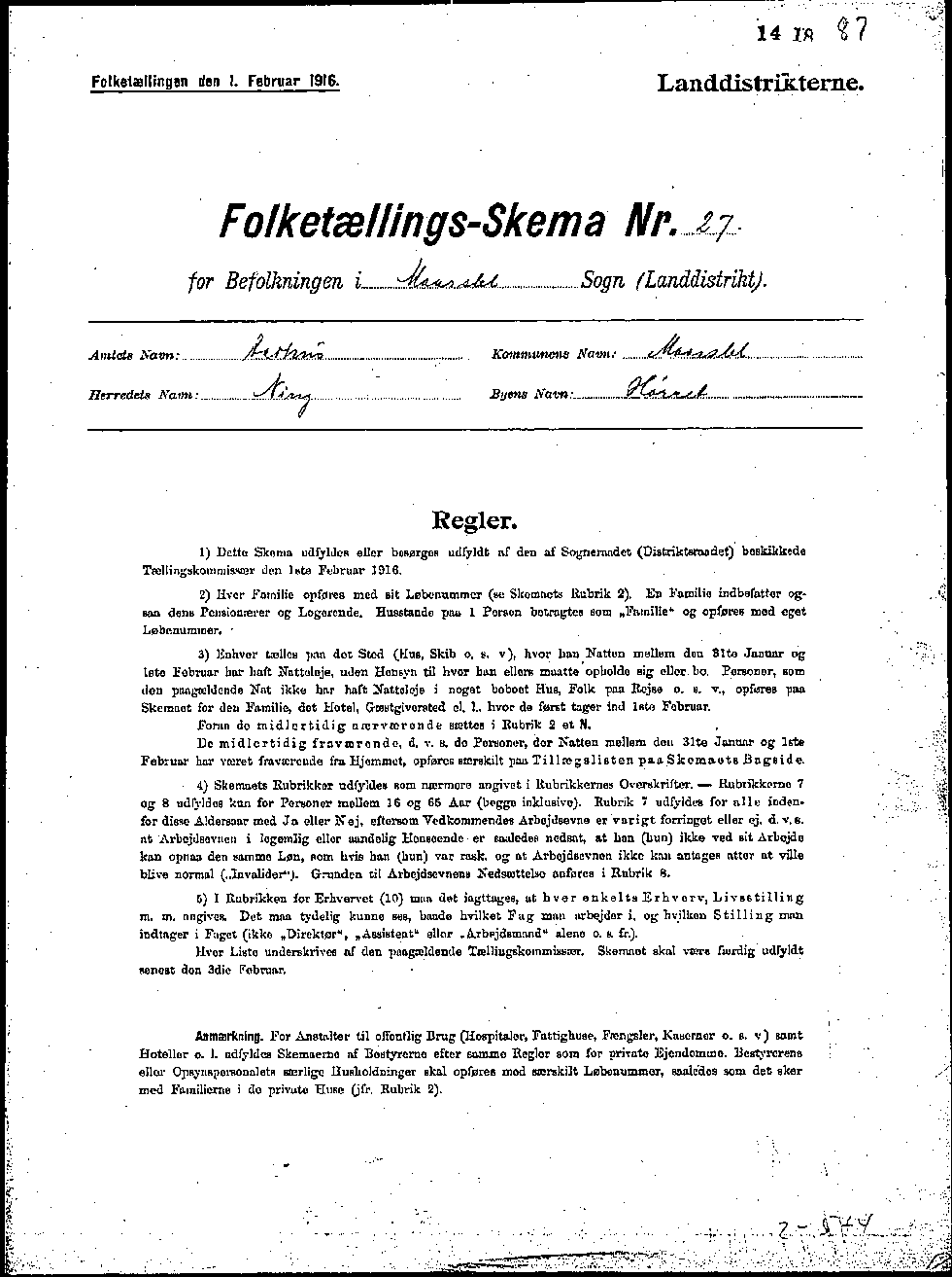 Side 116. Skema nr. 27. Hørret.