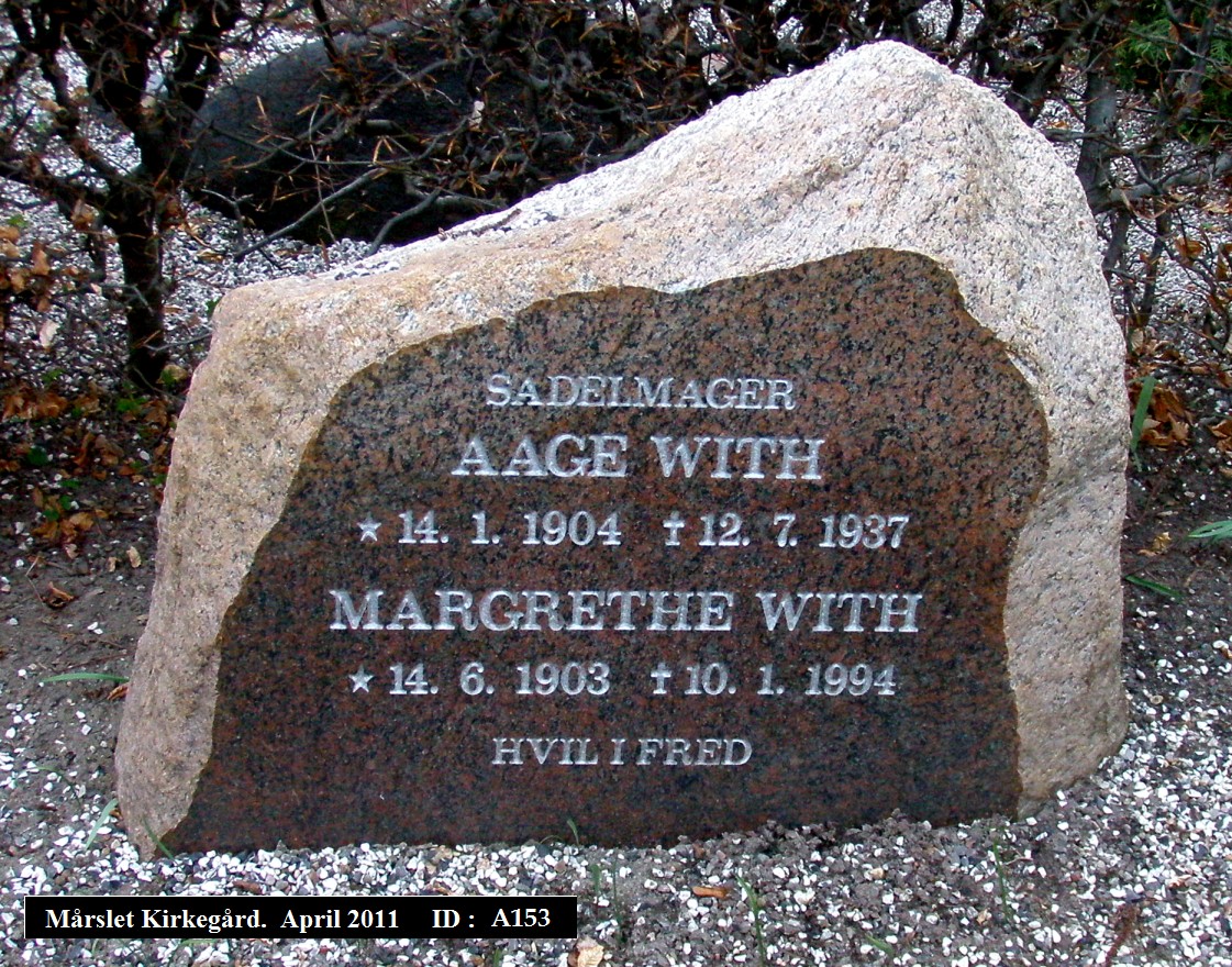 SADELMAGER AAGE WITH * 14.1.1904 + 12.7.1937 MARGRETHE WITH * 14.6.1903 + 10.1.1994 HVIL I FRED Gravstenen er fundet bevaringsværdig og er nu fredet. Se 'Fredede gravminder' øverst i højre hjørne. |