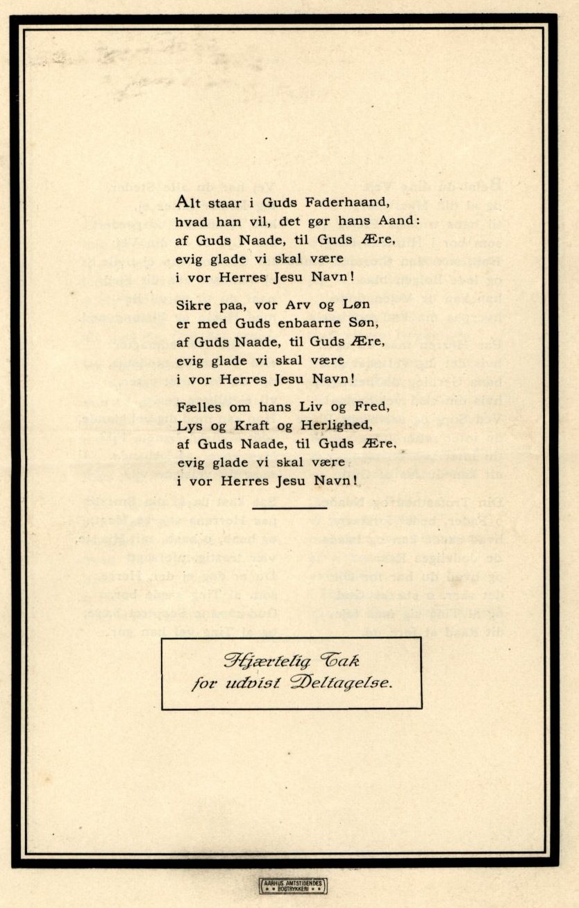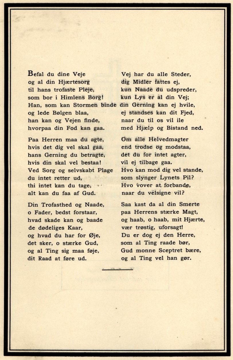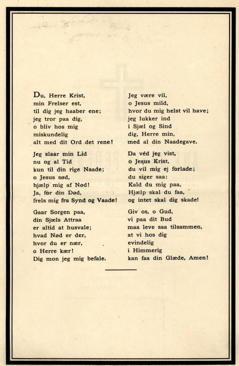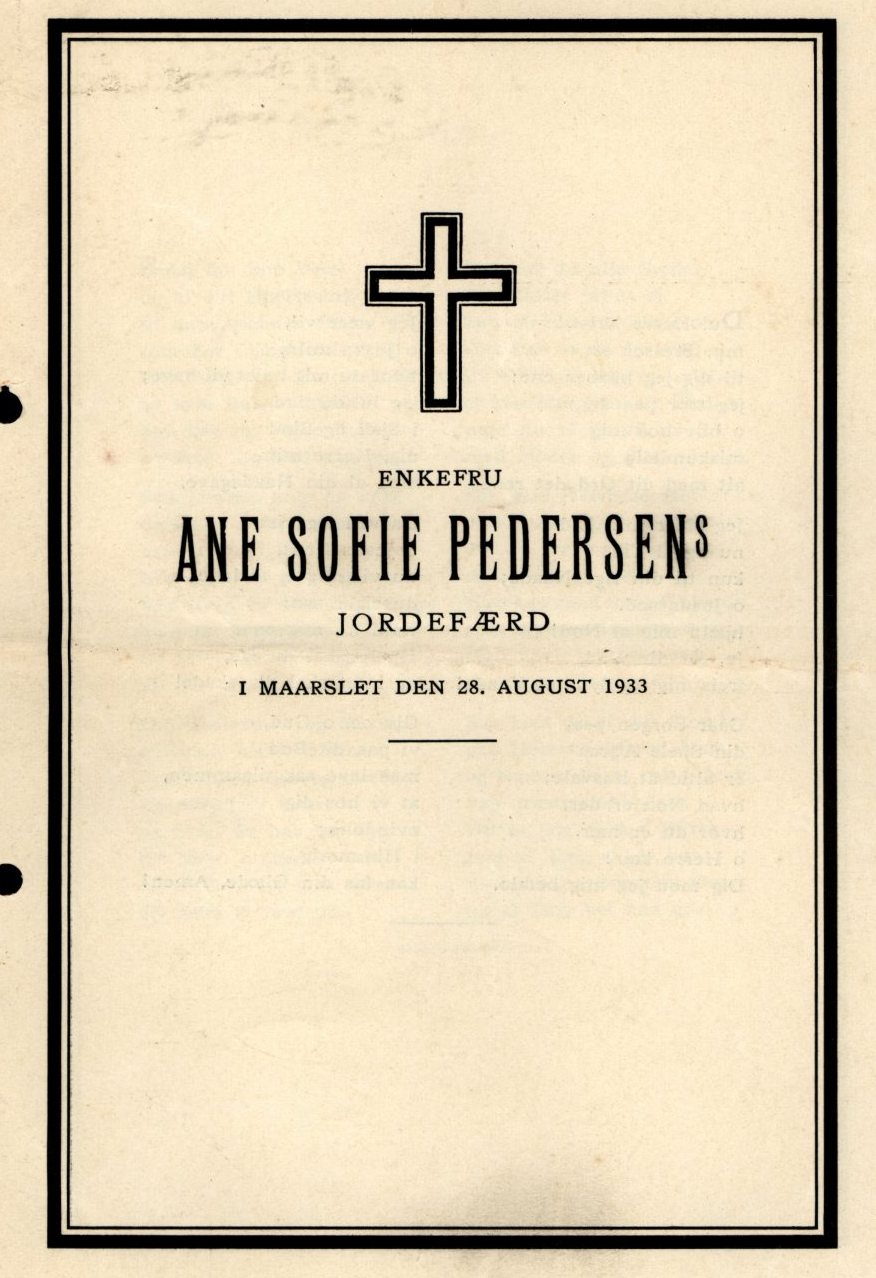 Salmeblad ved Ane Sofie Pedersens begravelse den 28. August 1933.