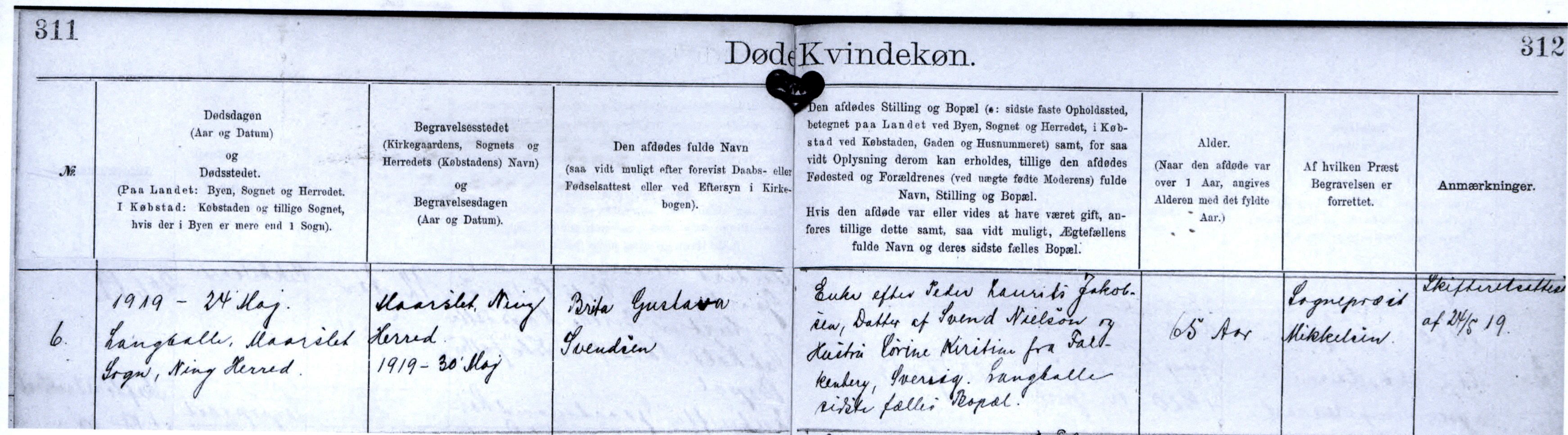 1919 - 24. Maj. Langballe. Maarslet Sogn. Ning Herred.
