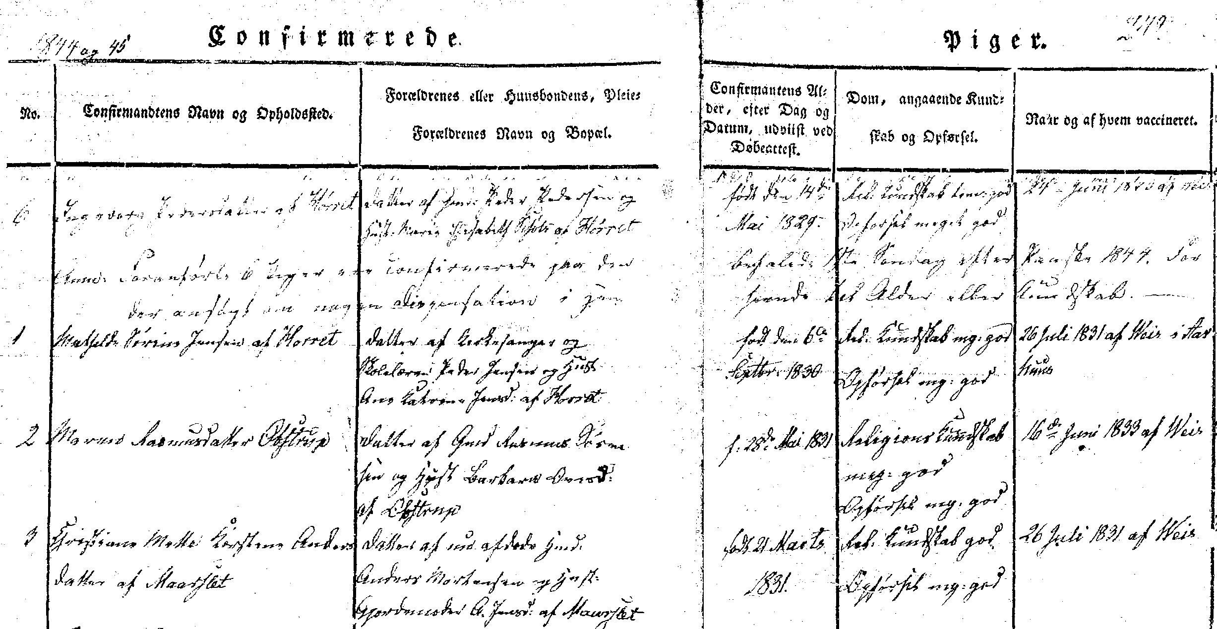 Kirkebog for Mårslet Sogn 1834-1854, side 249 - 'Konfirmerede Piger'.
