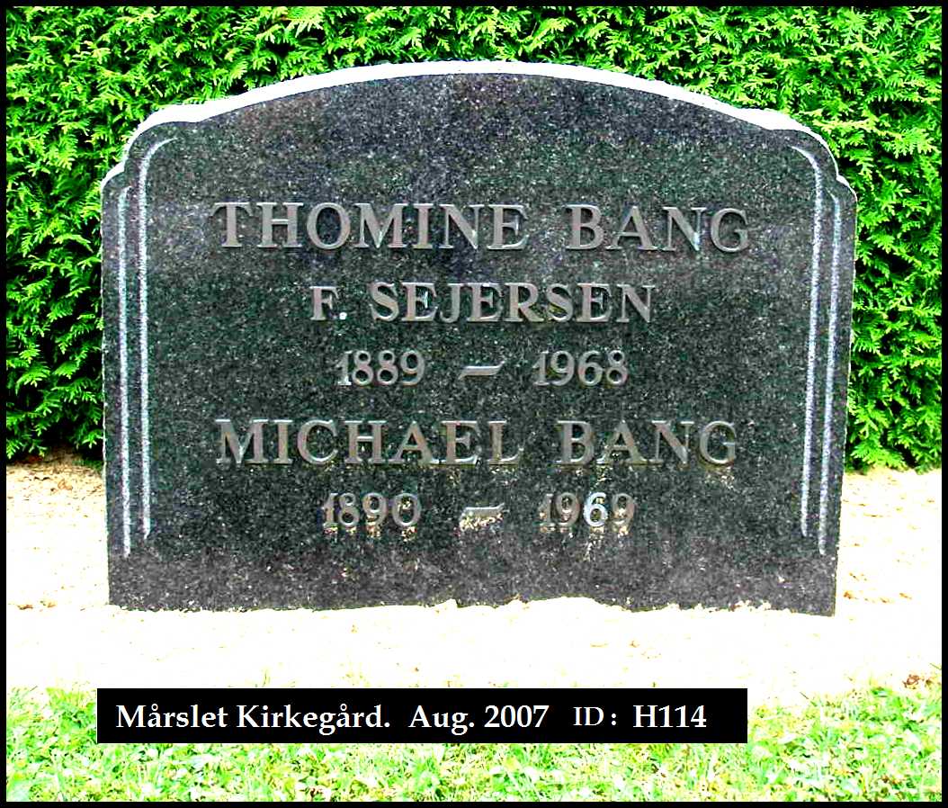 f. Sejersen Født:18-04-1889 Mårslet Død: 04-06- 1968 79 år, 1 måned, 17 dage Michael Bang Født:07-10-1890Viby Død: 16-03- 1969 78 år, 5 måneder, 9 dage