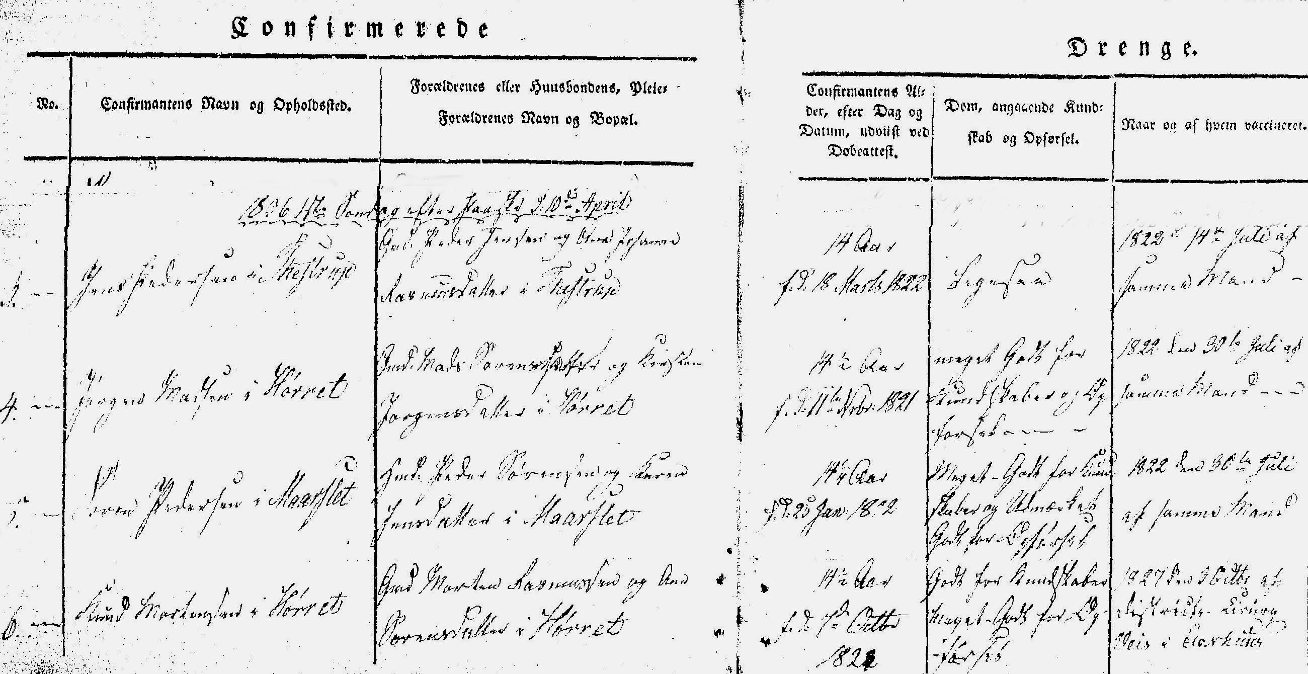 Kirkebog for Mårslet Sogn 1834-1854, side 21 - 'Konfirmerede Drenge'.
